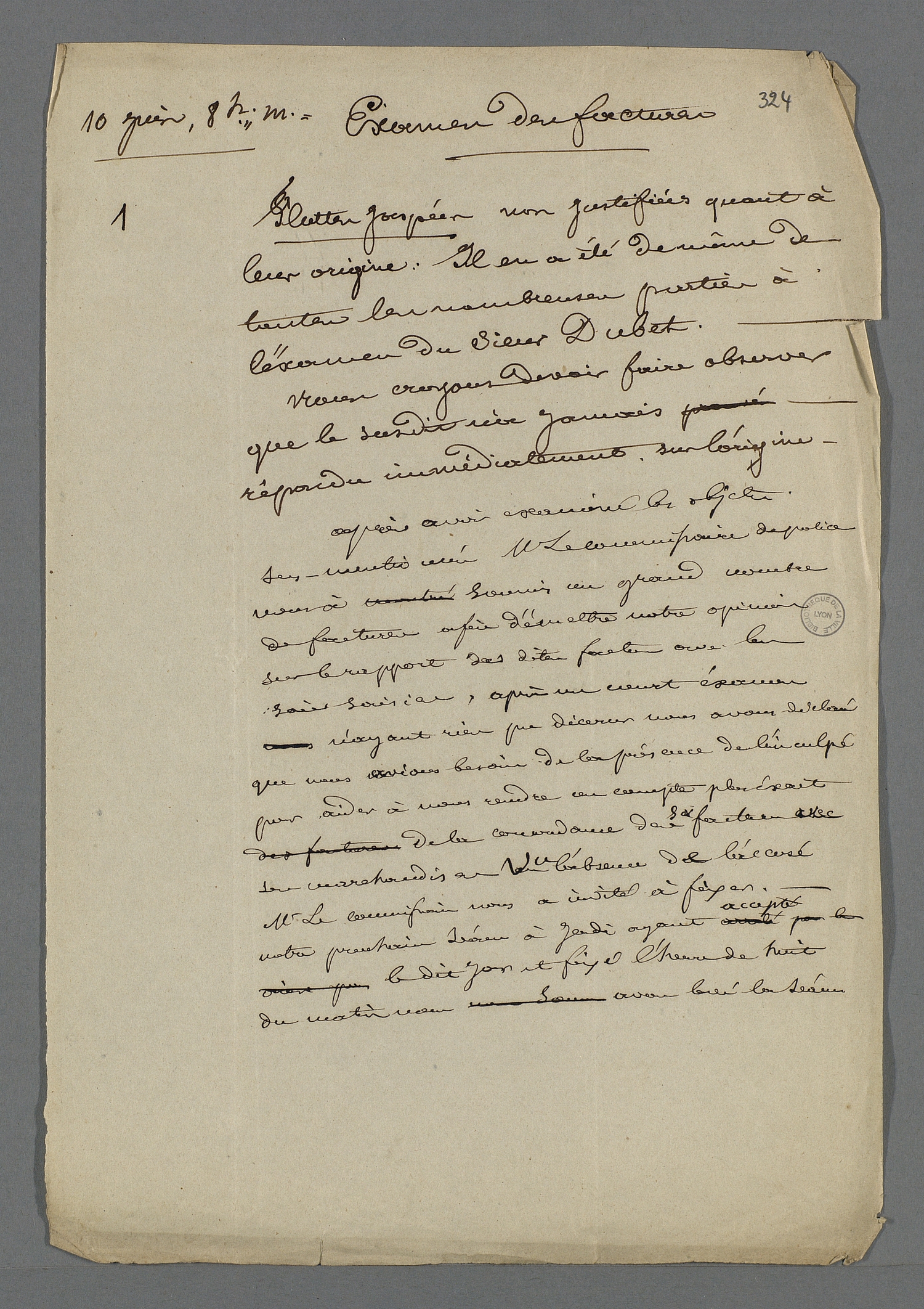Rapport d'expertise de Cochard et Pierre Charnier, membres du Conseil des Prud'hommes, concernant les biens saisis chez Pierre Dubet, durant la procédure lancée contre lui pour piquage d'once. (Bibliothèque municipale de Lyon - Fonds ancien, MS_RUDE_375_f321-324)