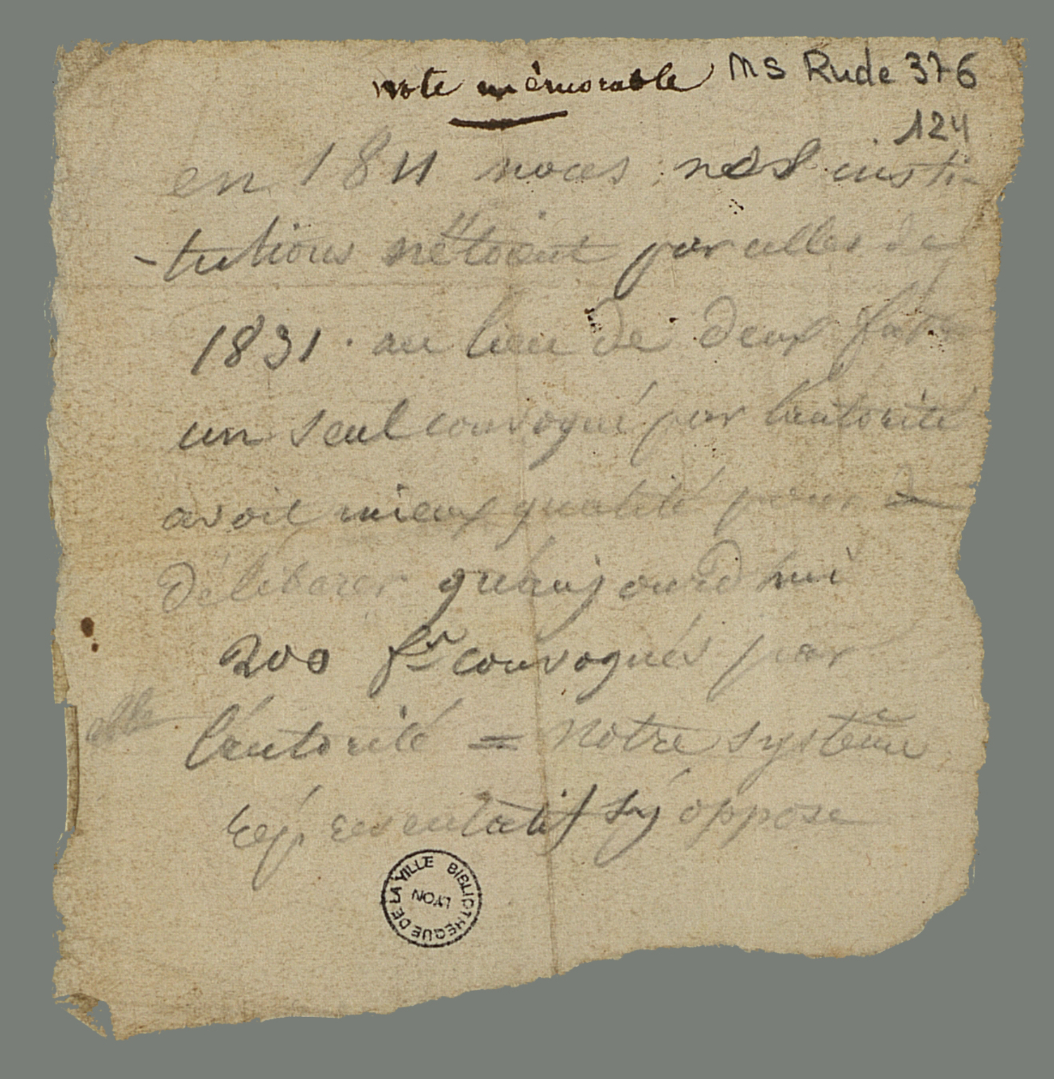 Note mémorable de Pierre Charnier. (Bibliothèque municipale de Lyon - Fonds ancien, MS_RUDE_376_f123-124)