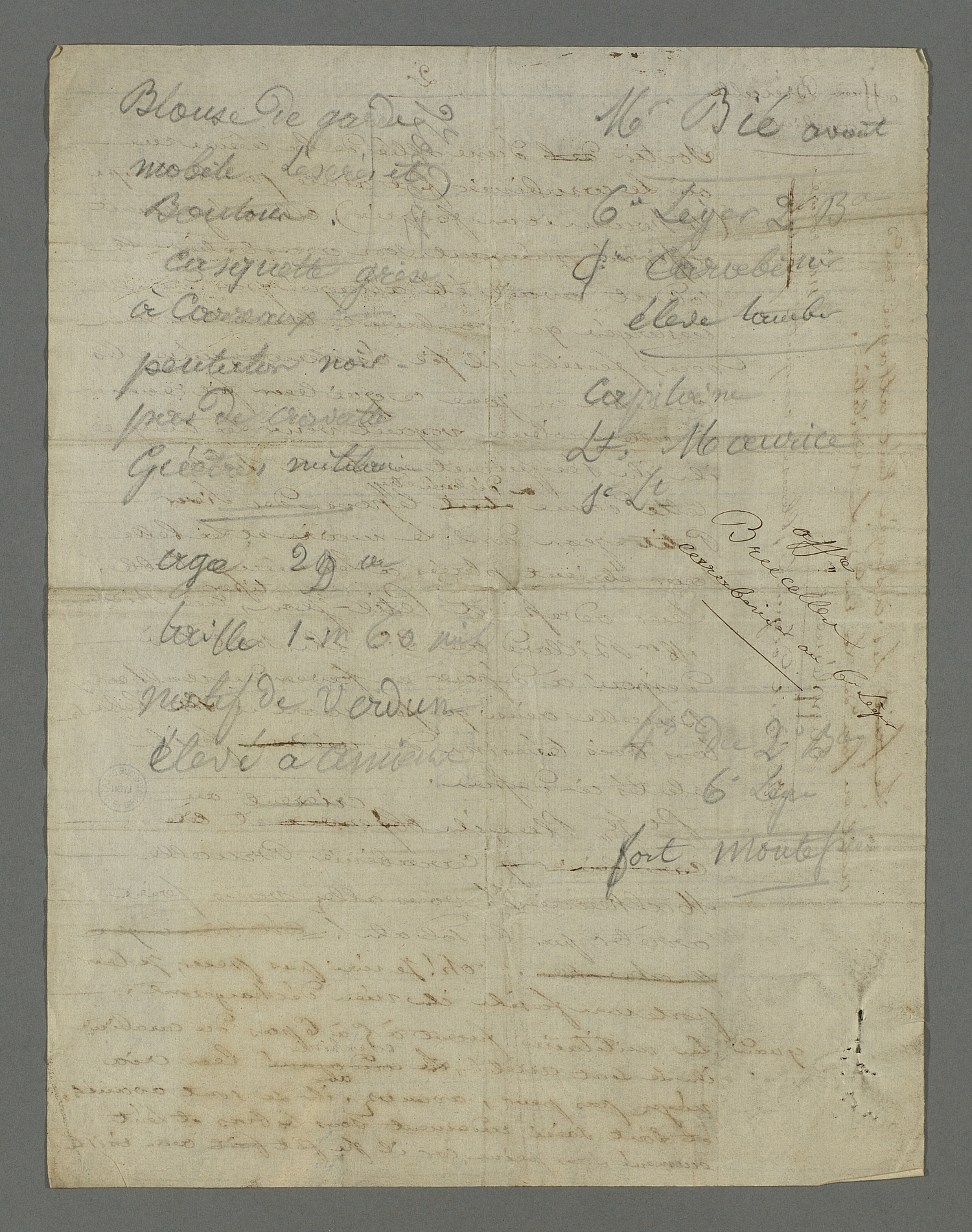 - Lettre de Brucelle, carabinier condamné à mort lors du conseil de guerre du 31 octobre 1849 pour avoir participé à l'insurrection de juin 1849,dans laquelle il remercie Pierre Charnier de l'avoir mis en relation avec Petit-Jean et lui demande également de venir lui rendre visite, lui expliquant les démarches à effectuer pour obtenir un permis.
