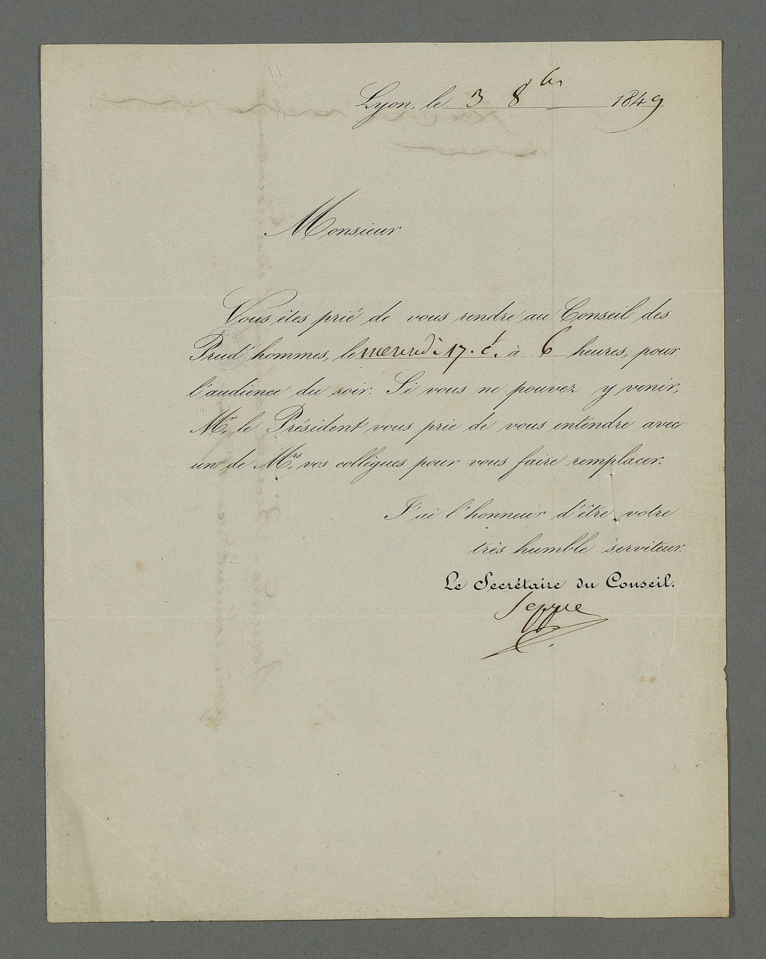 - Lettre adressée au procureur de la République, rédigée par Pierre Charnier pour le compte du beau-frère de la tisseuse Boiron, condamné à la détention, après l'insurrection de juin 1849.