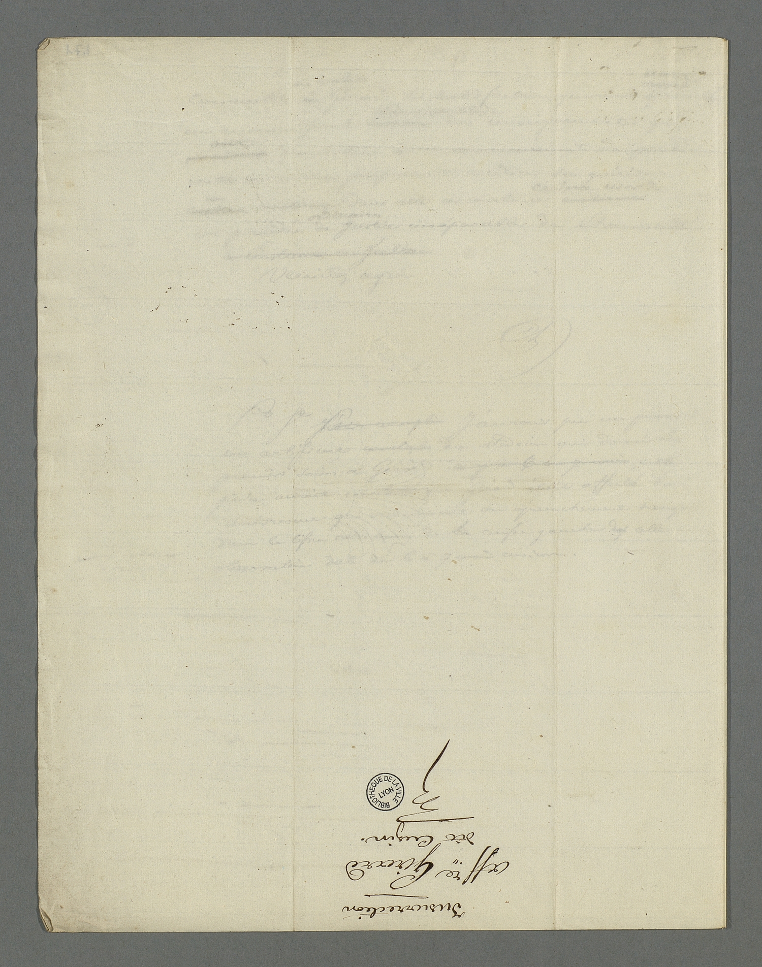 Lettre de Pierre Charnier adressée à Valotte à qui il demande d'intervenir en tant que témoin à décharge dans l'affaire de Girad, dit Cuzin, accusé d'avoir coopéré avec les insurgés de juin 1849 et détenu depuis à l'Hôtel-Dieu. (Bibliothèque municipale de Lyon - Fonds ancien, MS_RUDE_377_f470-471)