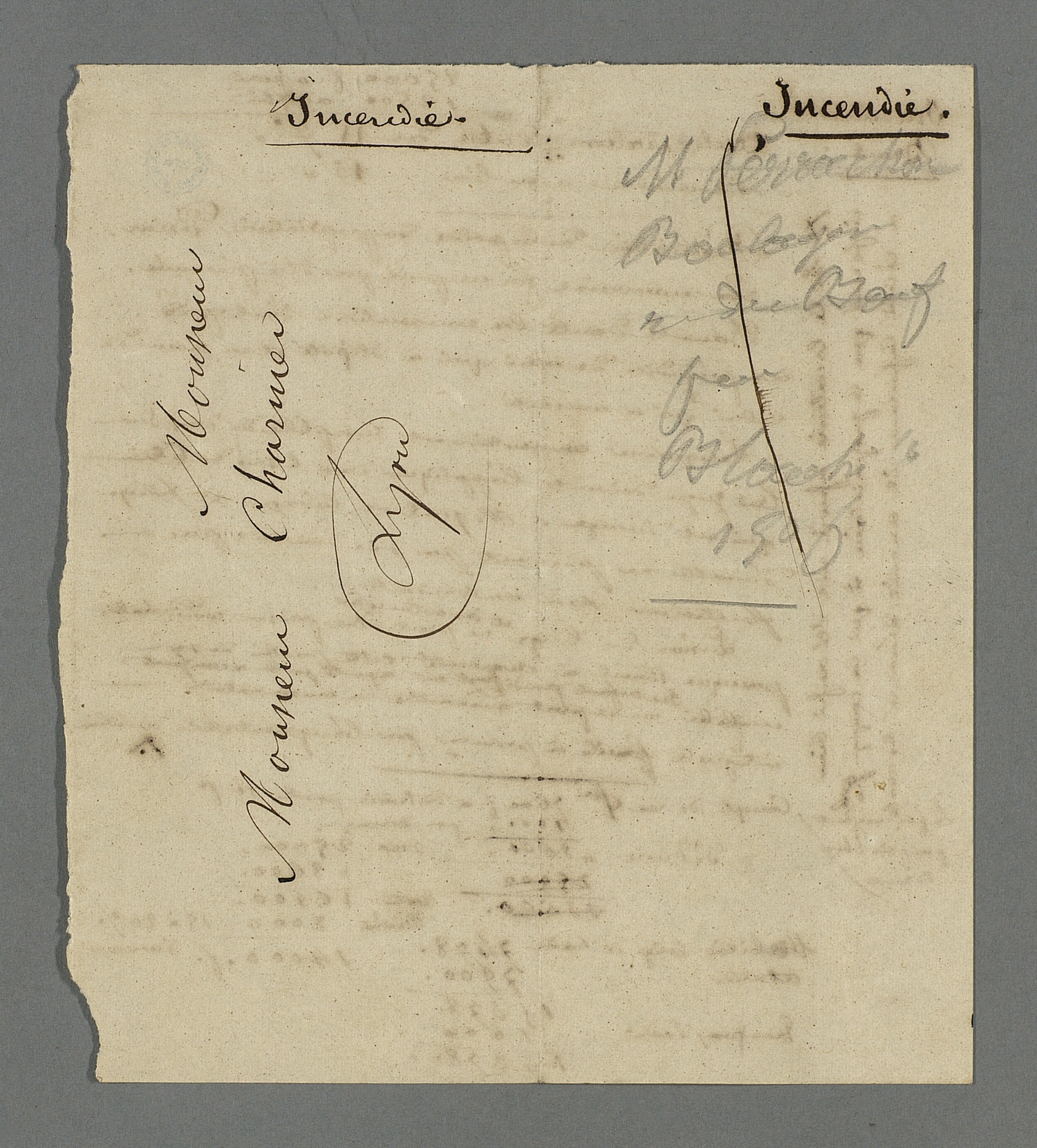 Notes de l'enquête concernant l'indemnisation de Bruel suite à l'incendie de son domicile. (Bibliothèque municipale de Lyon - Fonds ancien, MS_RUDE_379_f100-103)