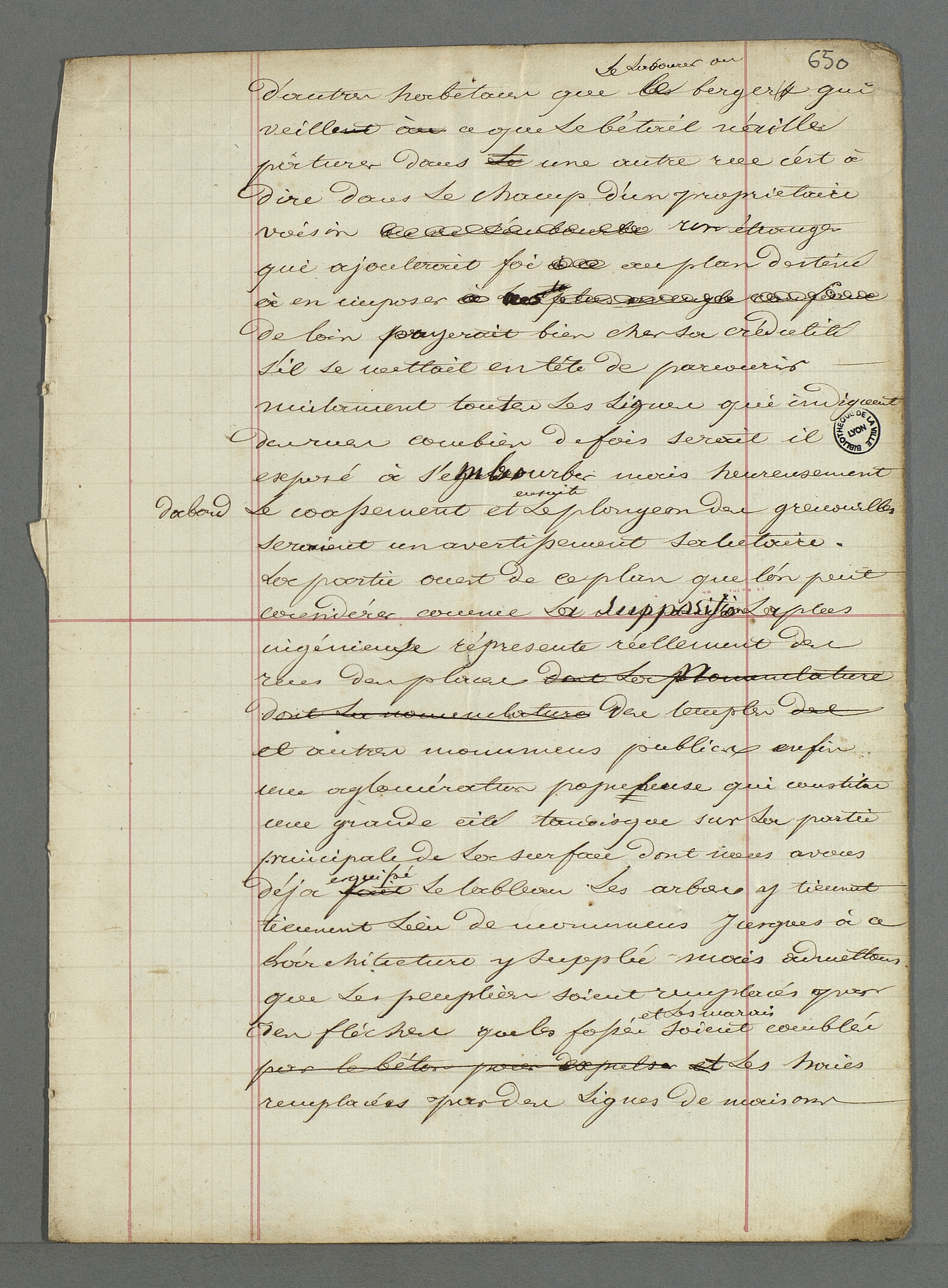 Observations de Pierre Charnier au sujet de la demande d'enquête concernant l'emplacement du débarcadère du chemin de fer. (Bibliothèque municipale de Lyon - Fonds ancien, MS_RUDE_379_f649-651)