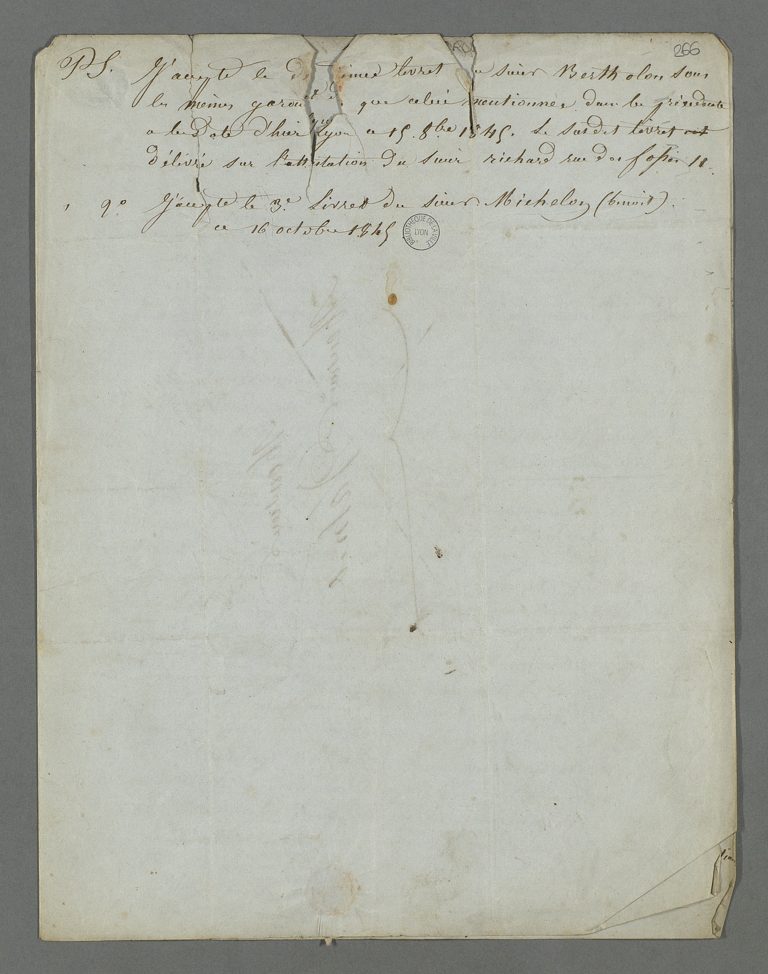 - Lettre de Marmillon, adressée à Valney, dans laquelle il lui démontre comment, malgré les efforts de Pierre Charnier et d'autres, il est parvenu à partir de Lyon et voyager où bon lui semble.