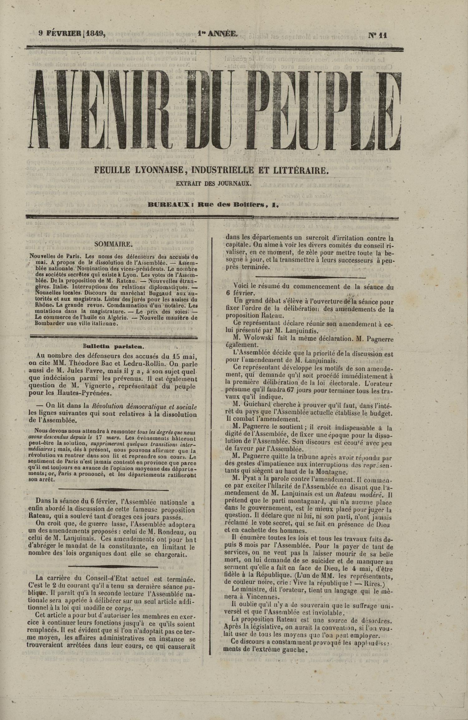 Avenir du peuple, N°11 (Bibliothèque municipale de Lyon - Documentation régionale, 5529)