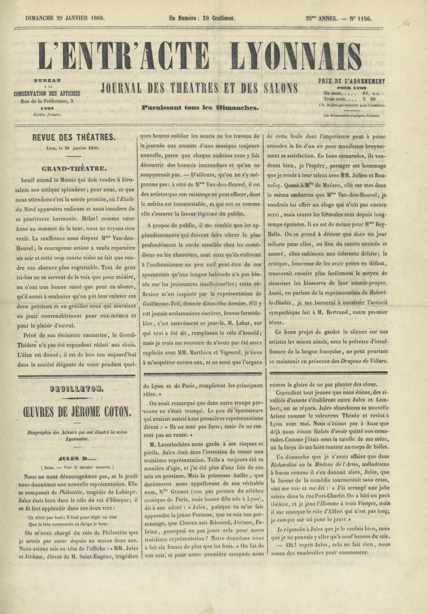 L'Entr'acte lyonnais, N°1156 (Bibliothèque municipale de Lyon - Documentation régionale, 5610 bis)