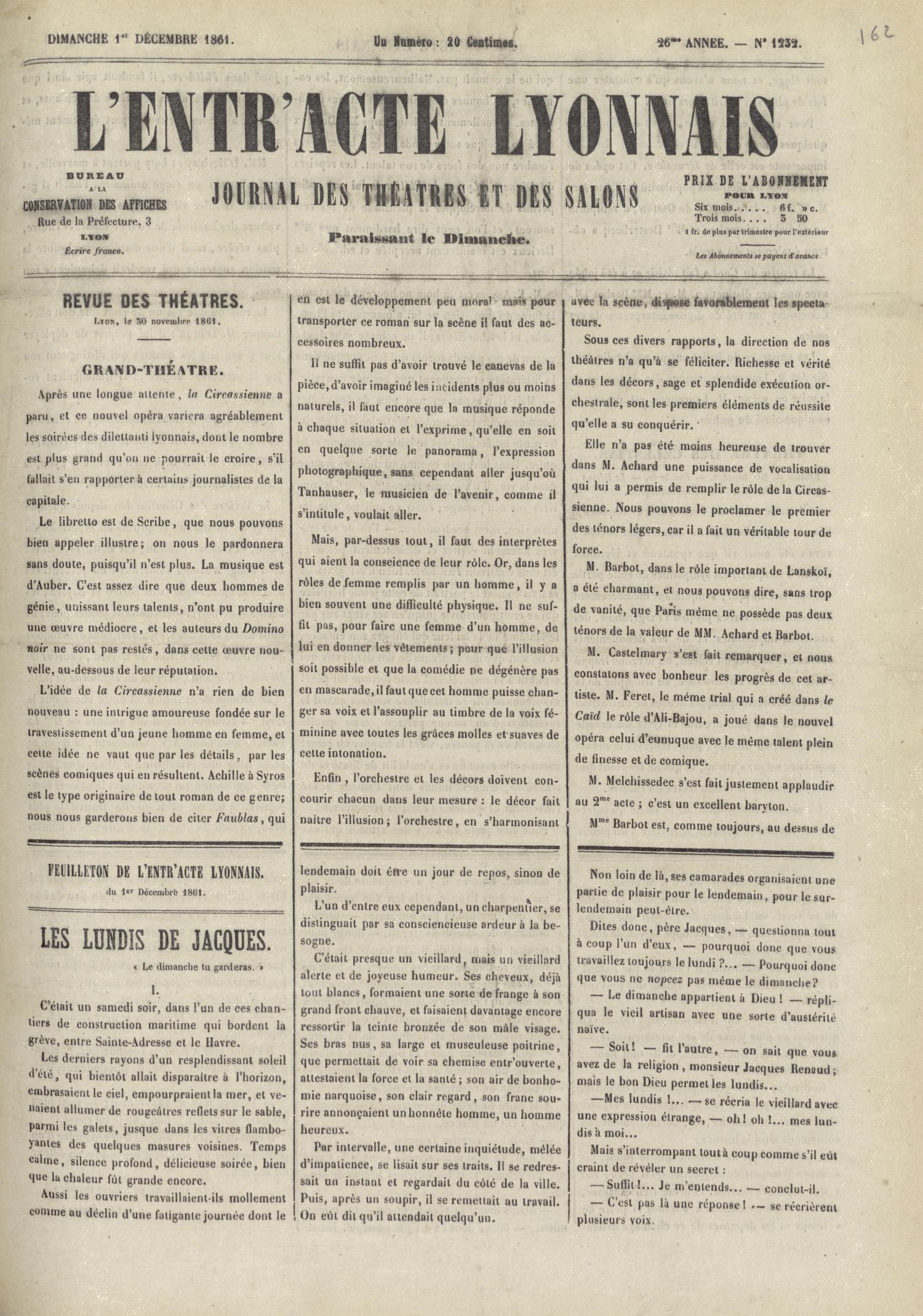 L'Entr'acte lyonnais, N°1232 (Bibliothèque municipale de Lyon - Documentation régionale, 5610 bis)