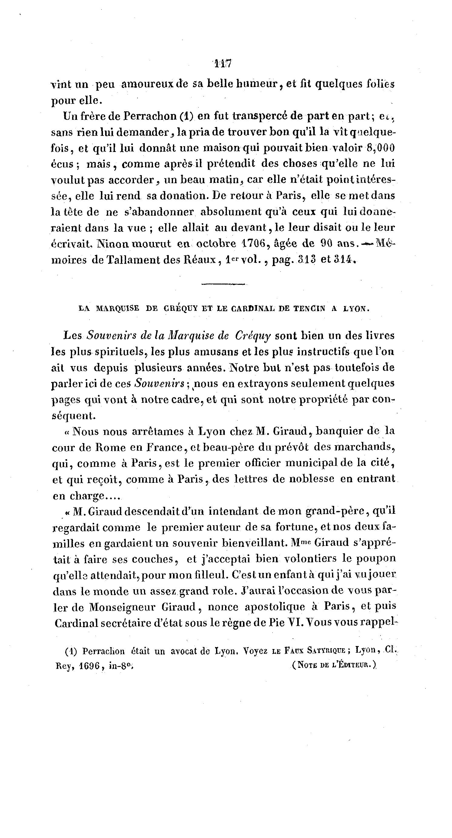 ai) Perrachon était un avocat de Lyon, Voyez LE FAUX SATYMQUE ; Lyon, CI.