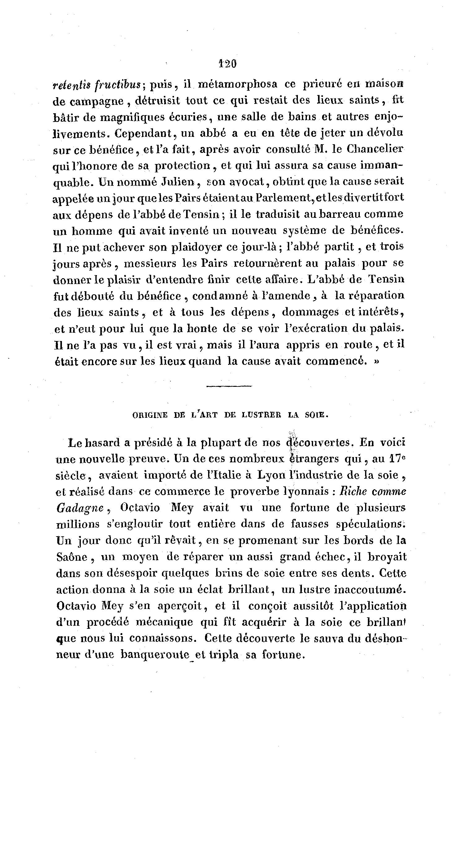 ORIGINE DE L'ART DE LUSTRER LA SOIE.