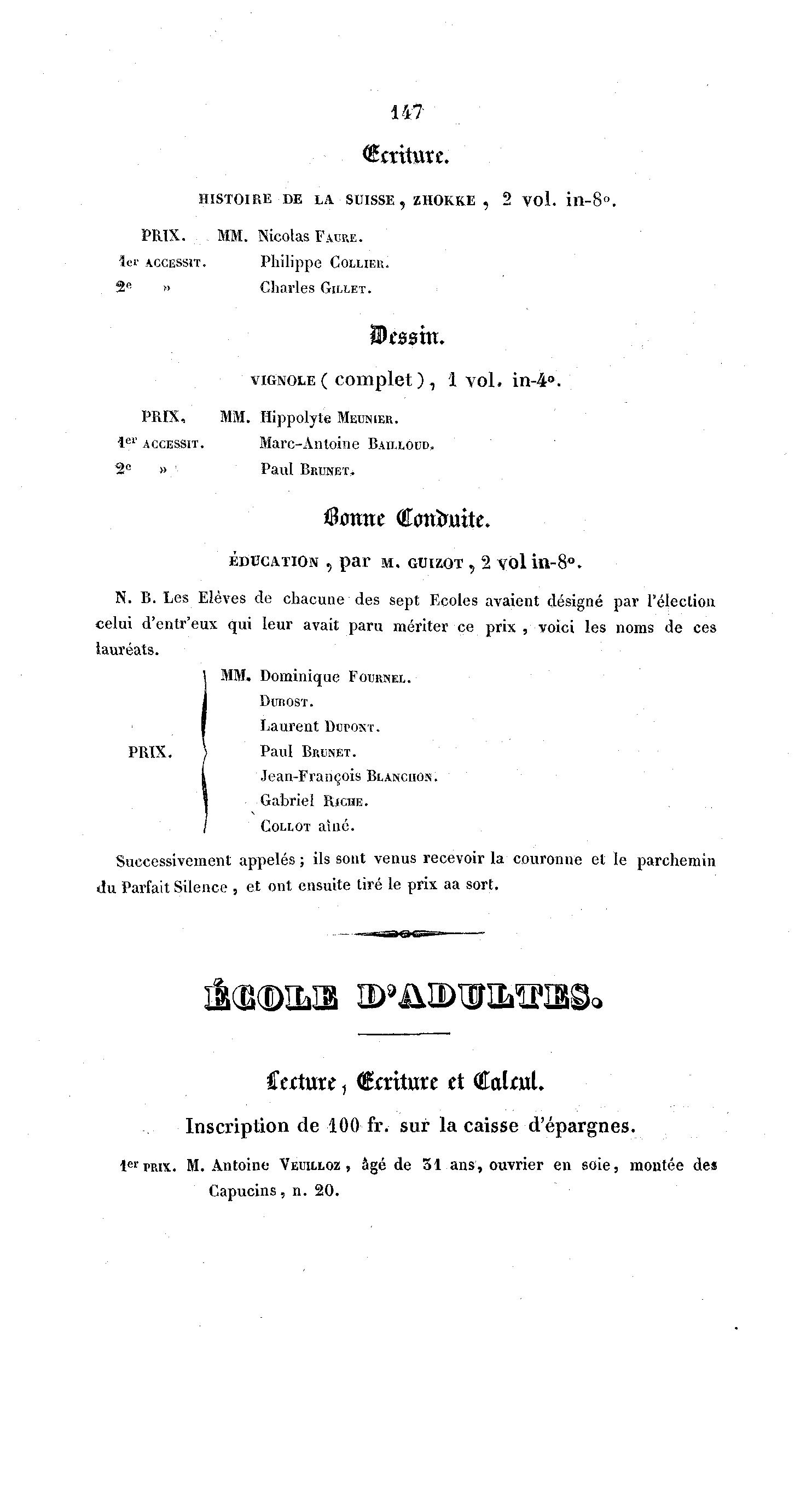 N. B. Les Elèves de chacune des sept Ecoles avaient désigné p a r l'éleclion