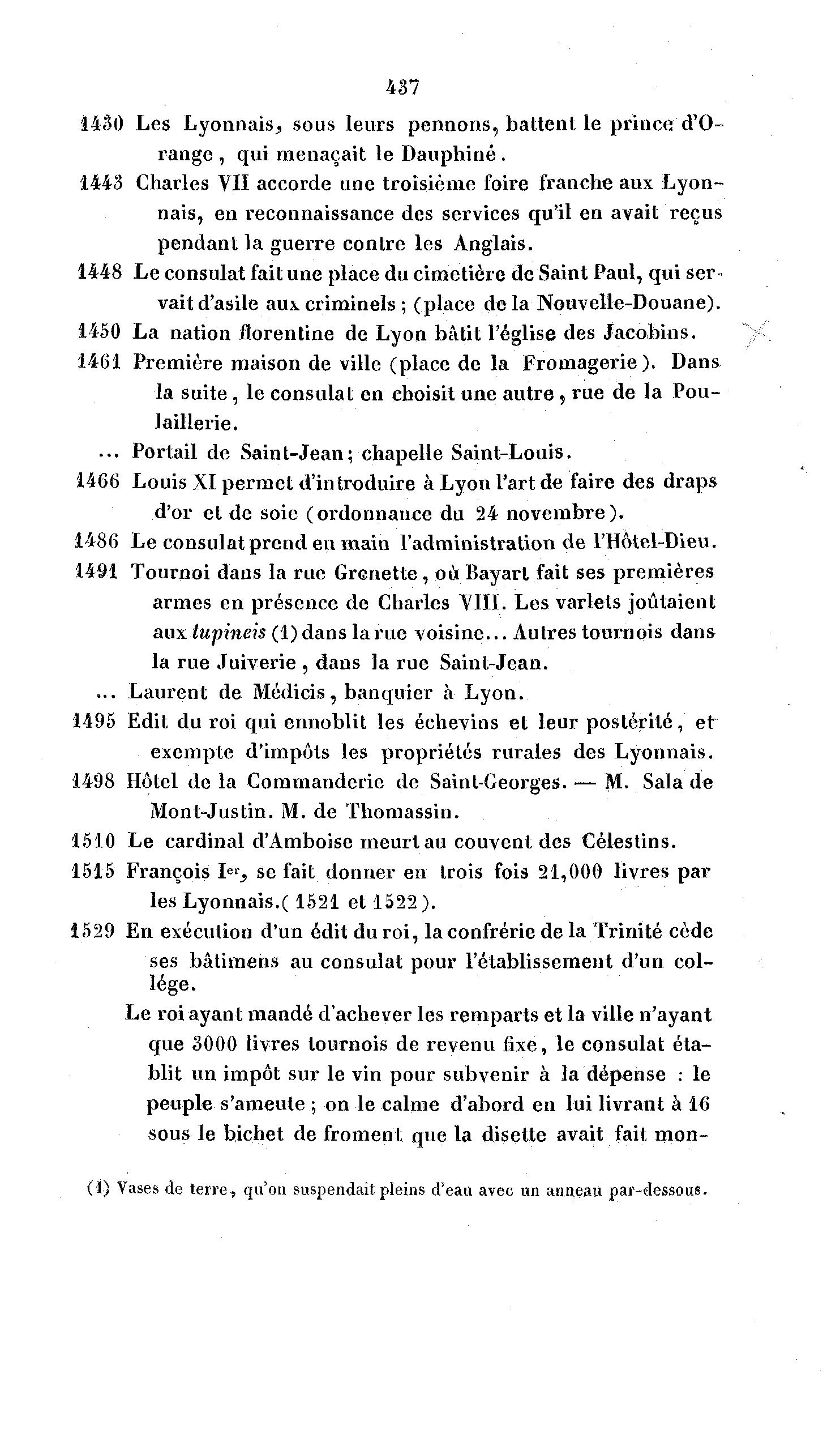 1430 Les Lyonnais^ sous leurs pennons, battent le prince d'O-