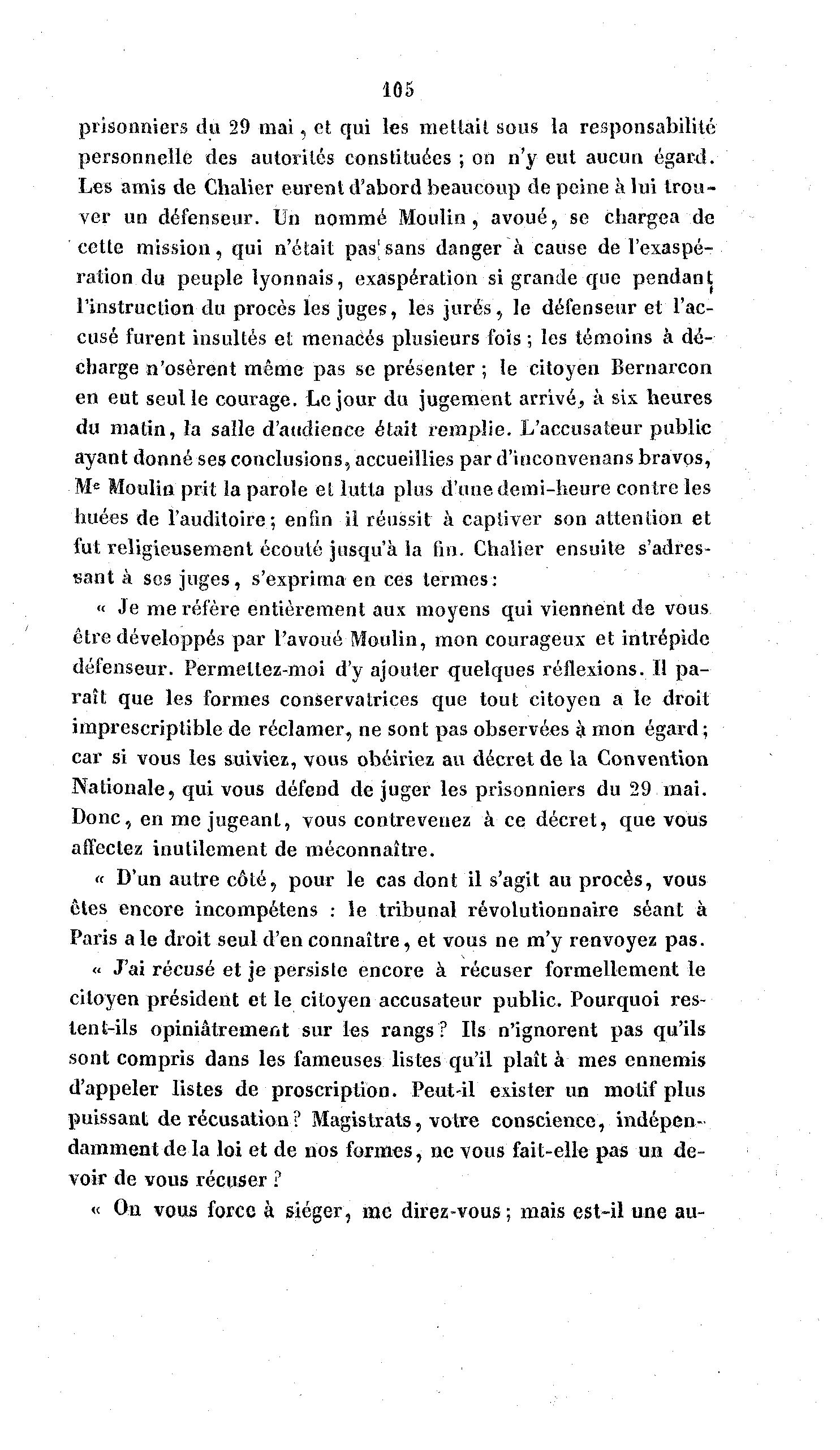 ver un défenseur. Un nommé Moulin, avoué, se chargea de
