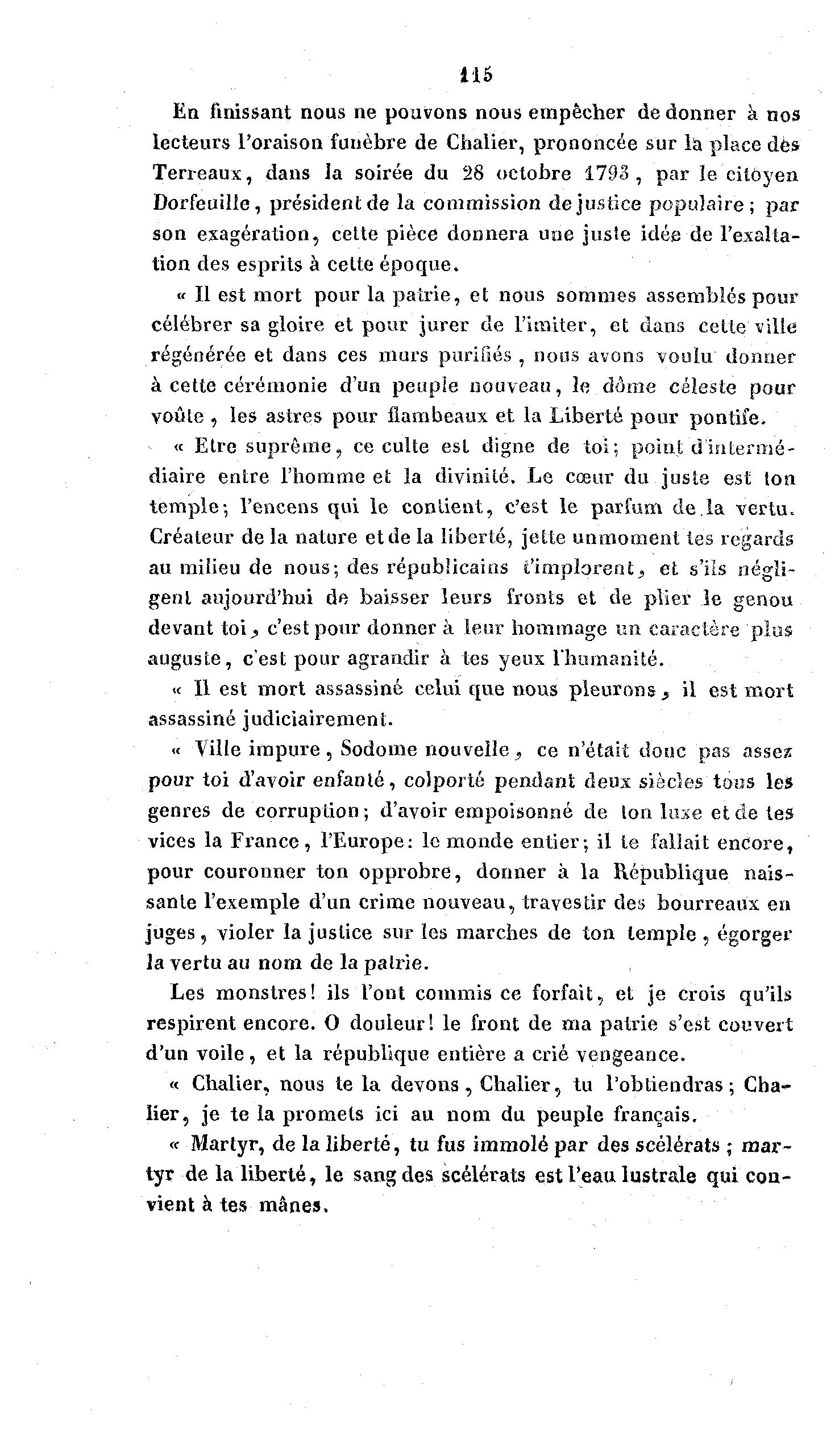 lecteurs l'oraison funèbre de Chalier, prononcée sur la place dès