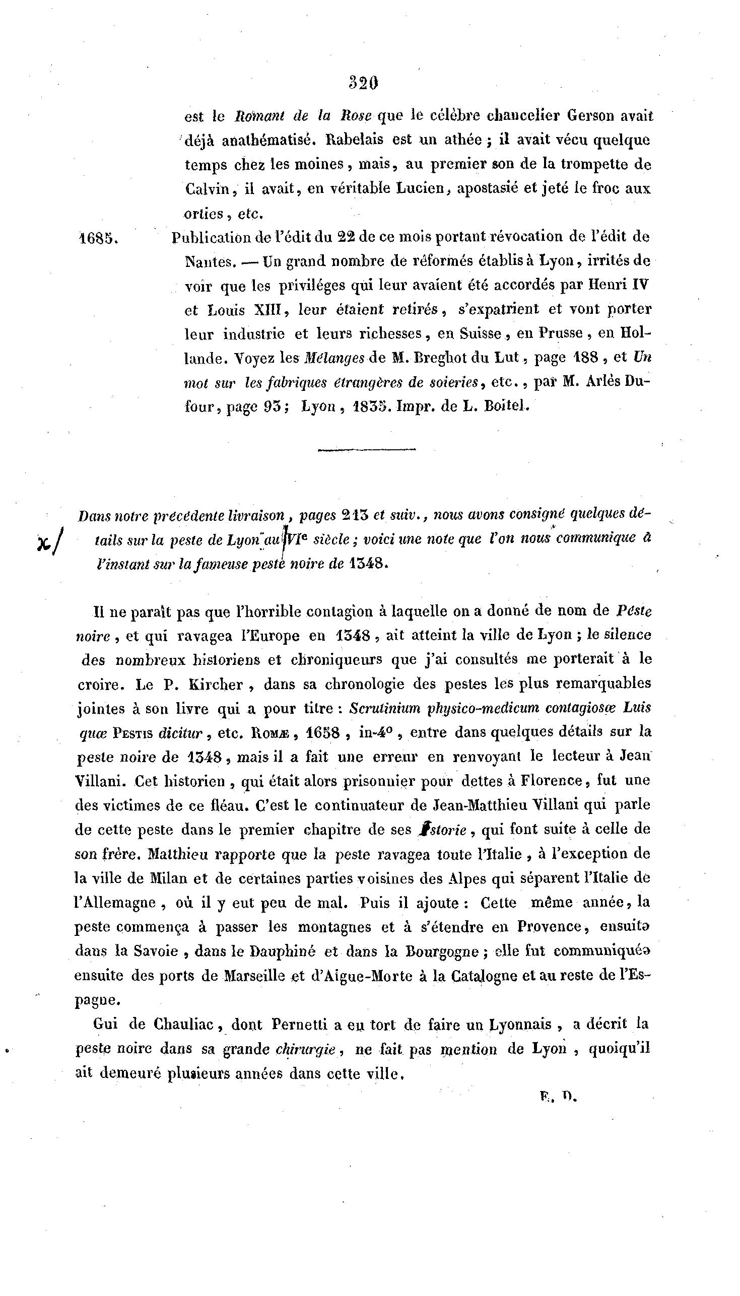 tails sur la peste de Lyonauwl" siècle ; voici une note que Von nous communique Ã