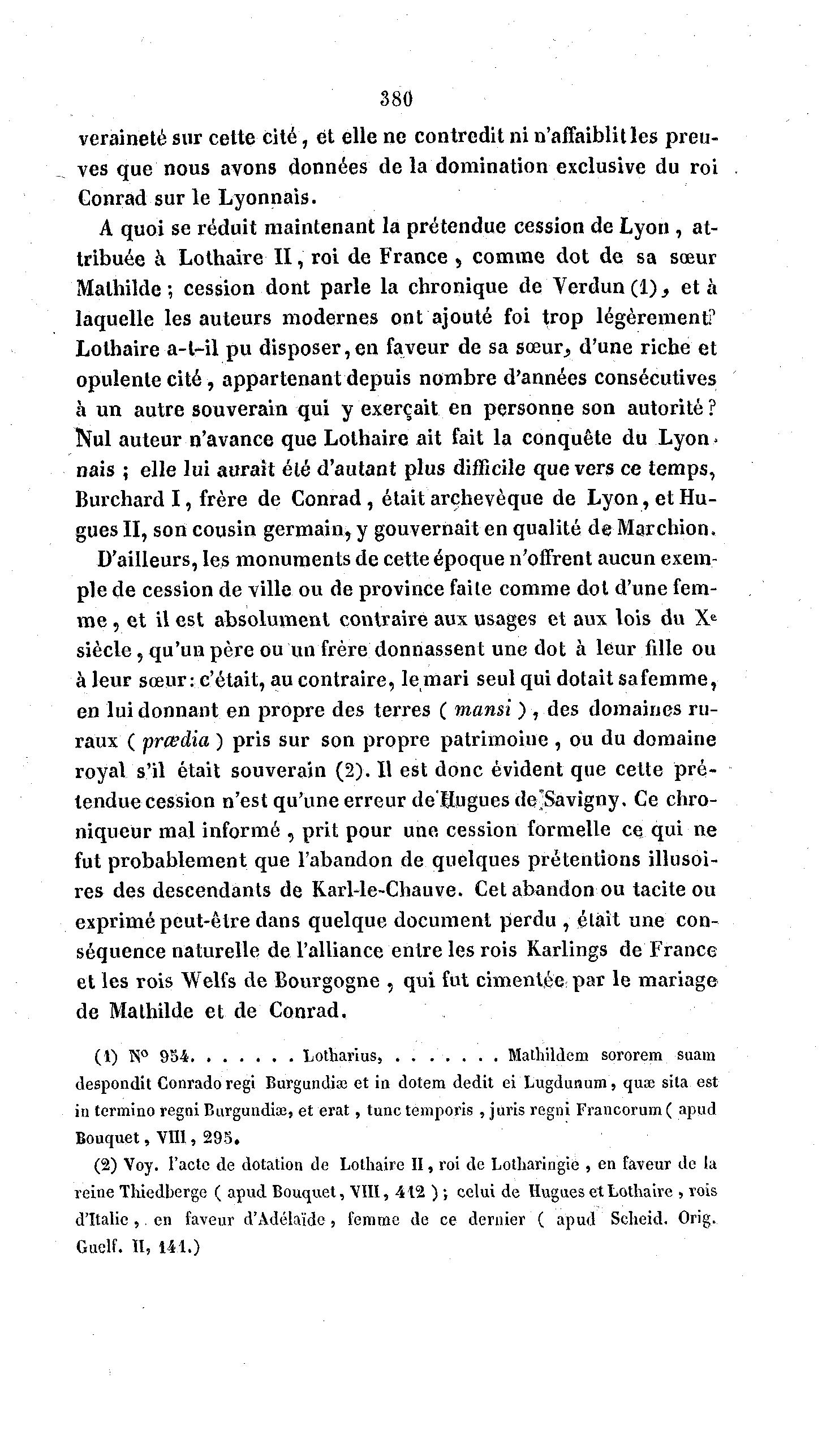 (2) Voy. l'acte de dotation de Lothaire II, roi de Lotharingie , en faveur de la