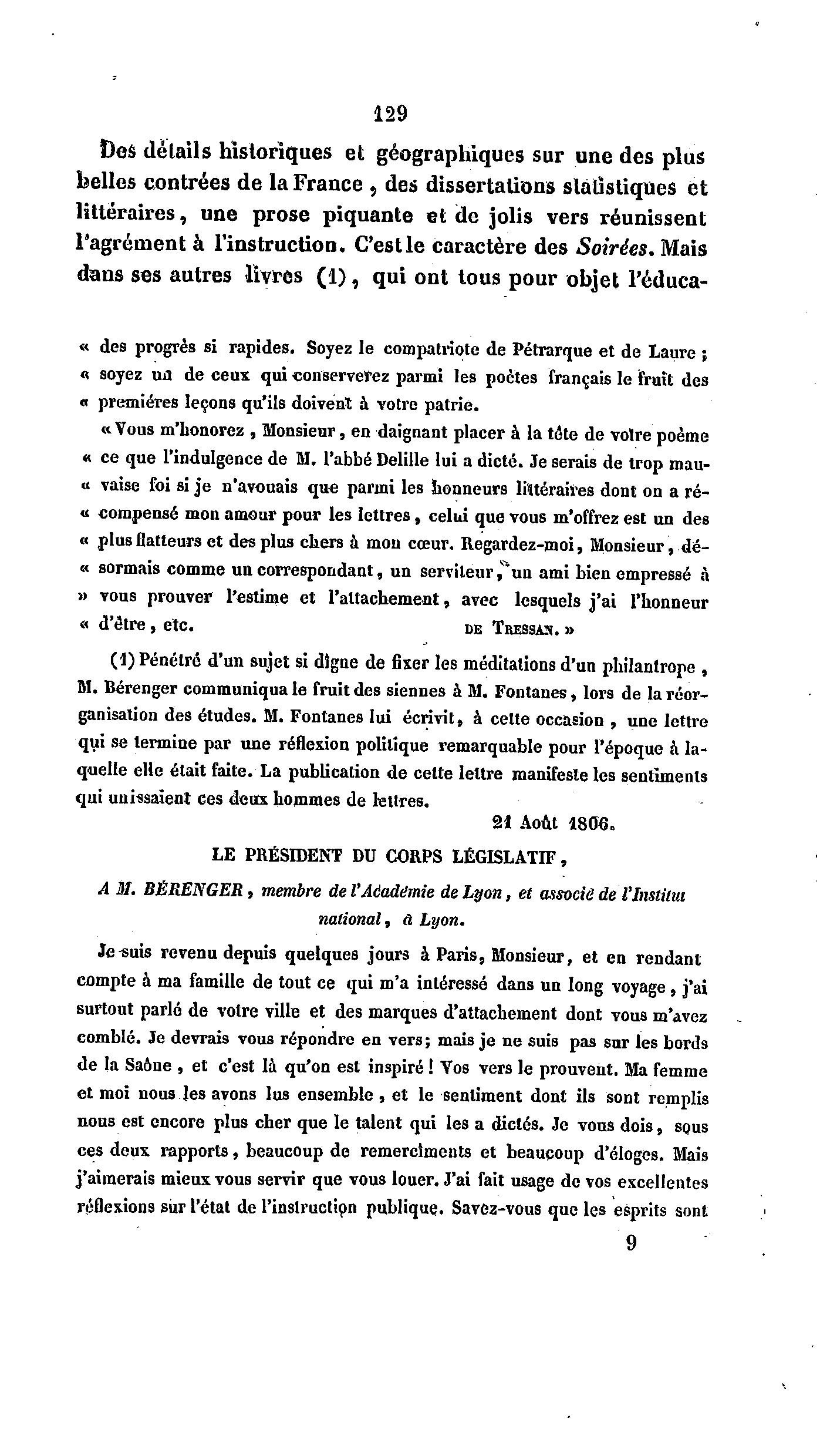 M. Bérenger communiqua le fruit des siennes à M. Fontanes, lors de la réor-