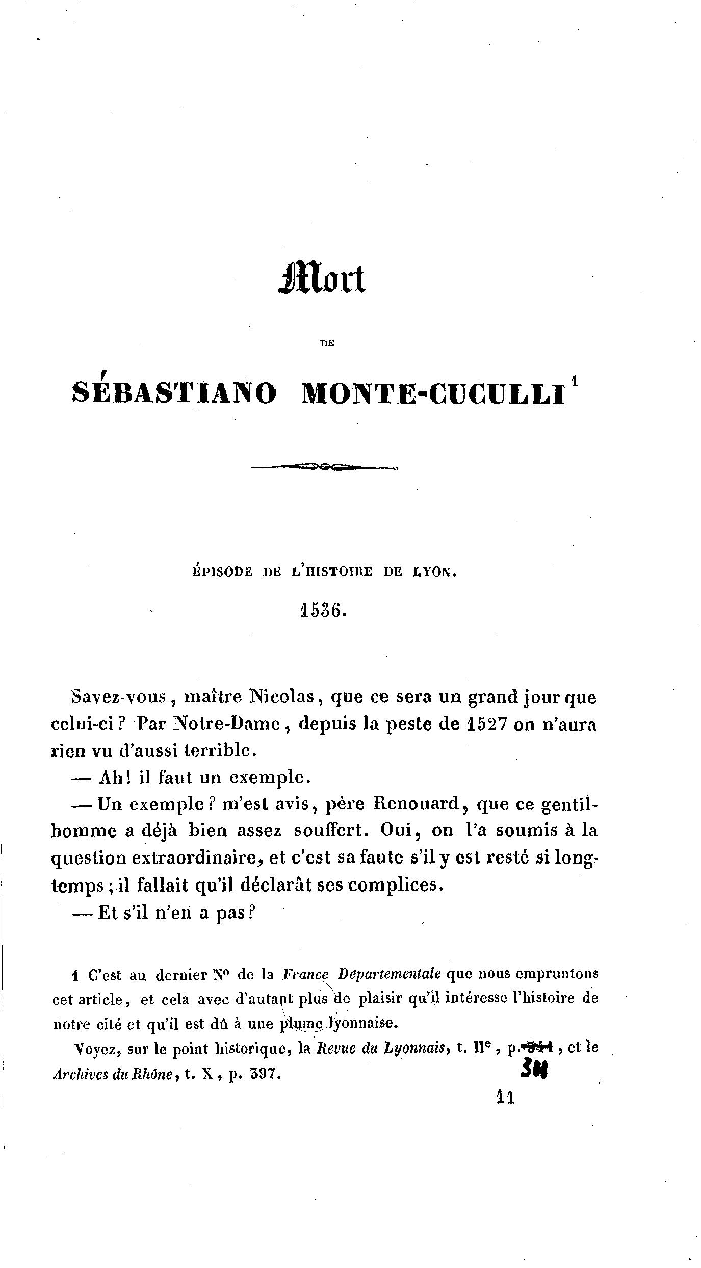 Voyez, sur le point historique, la Revue du Lyonnais, t. I I e , p.*9»H , et le