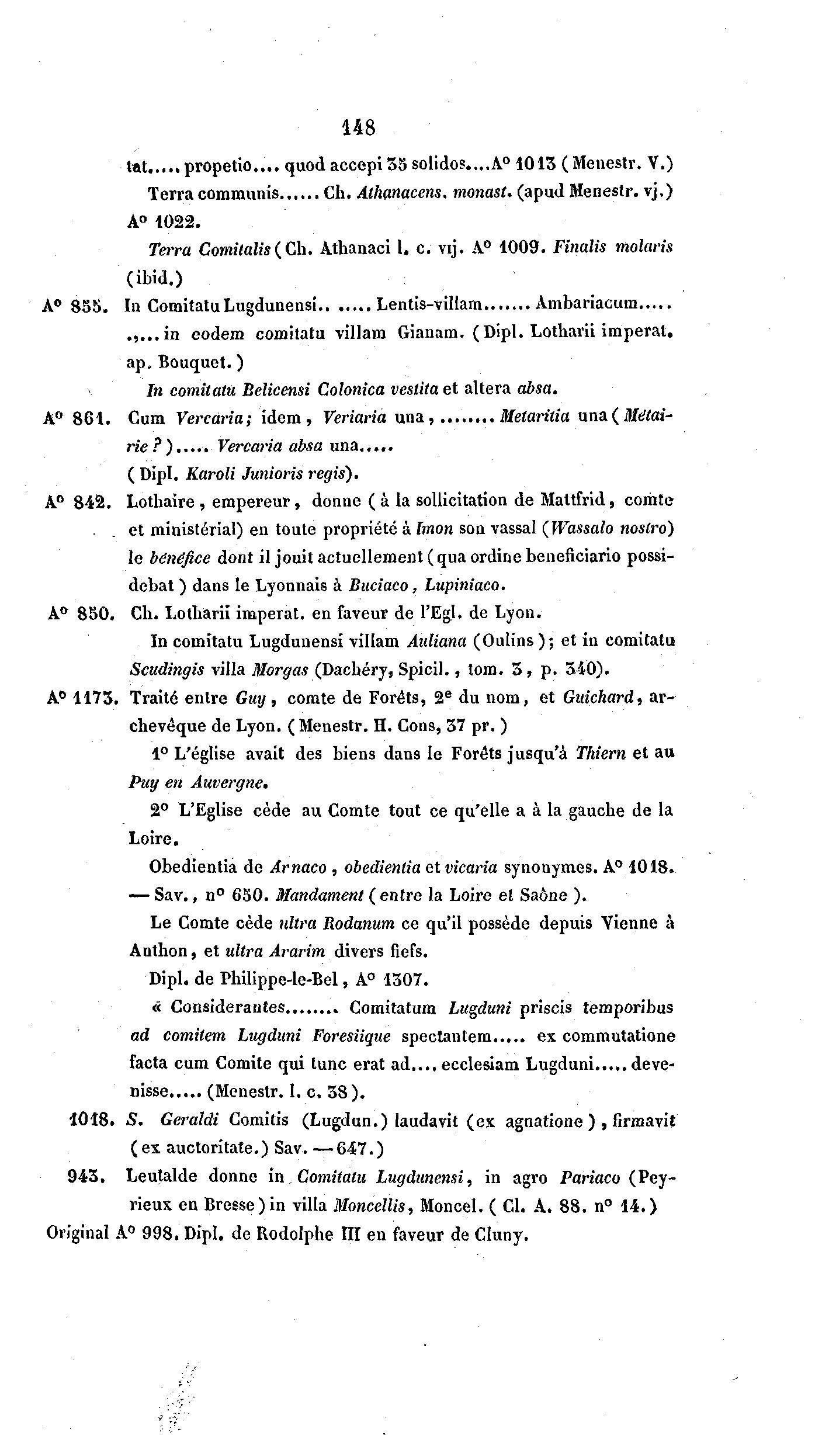 A° 855. In Comitatu Lugdunensi Lentis-villam Ambariacum