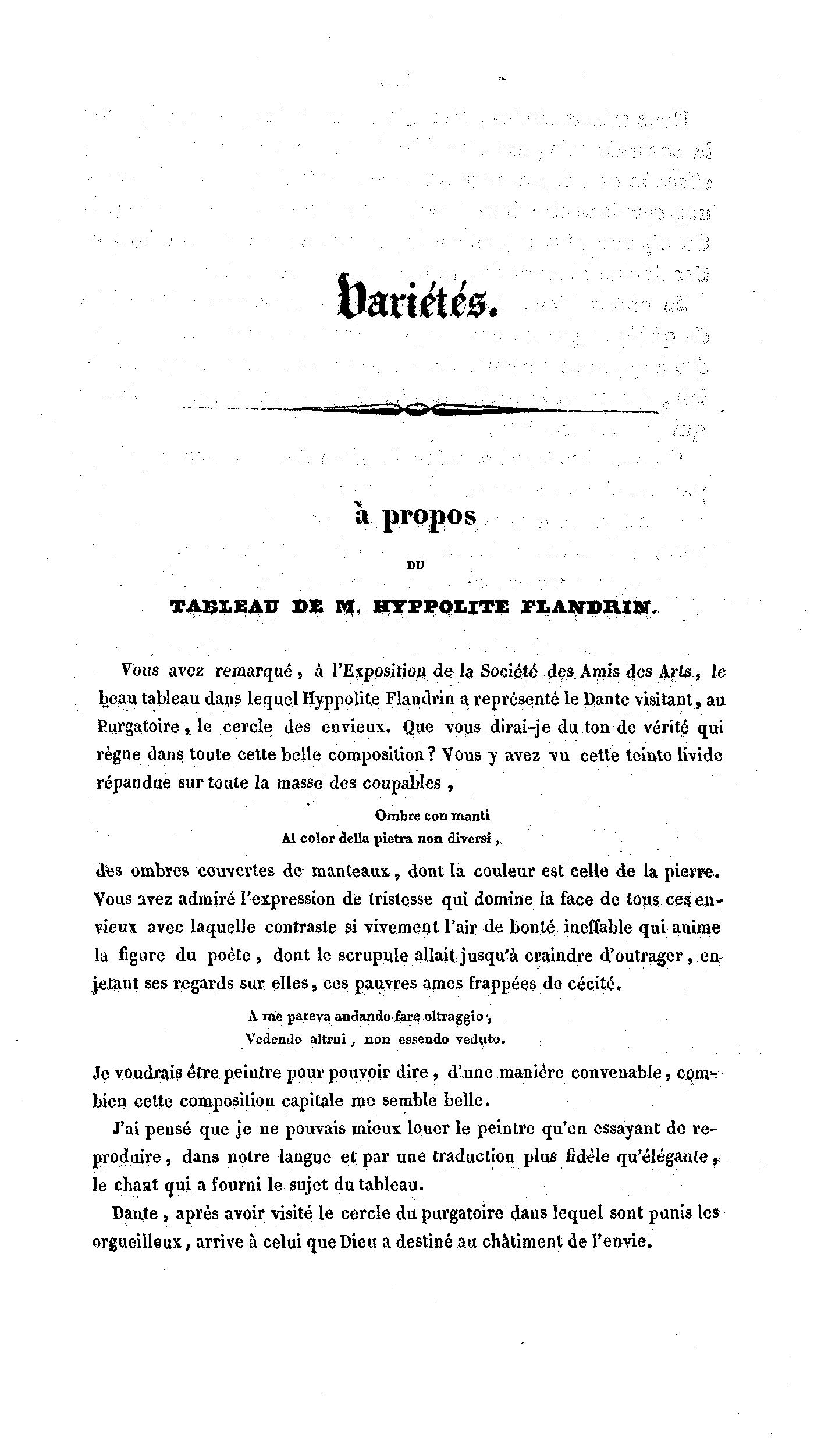 feeau tableau dan? lequel Hyppolite Flandrin a représenté le Dante visitant, au