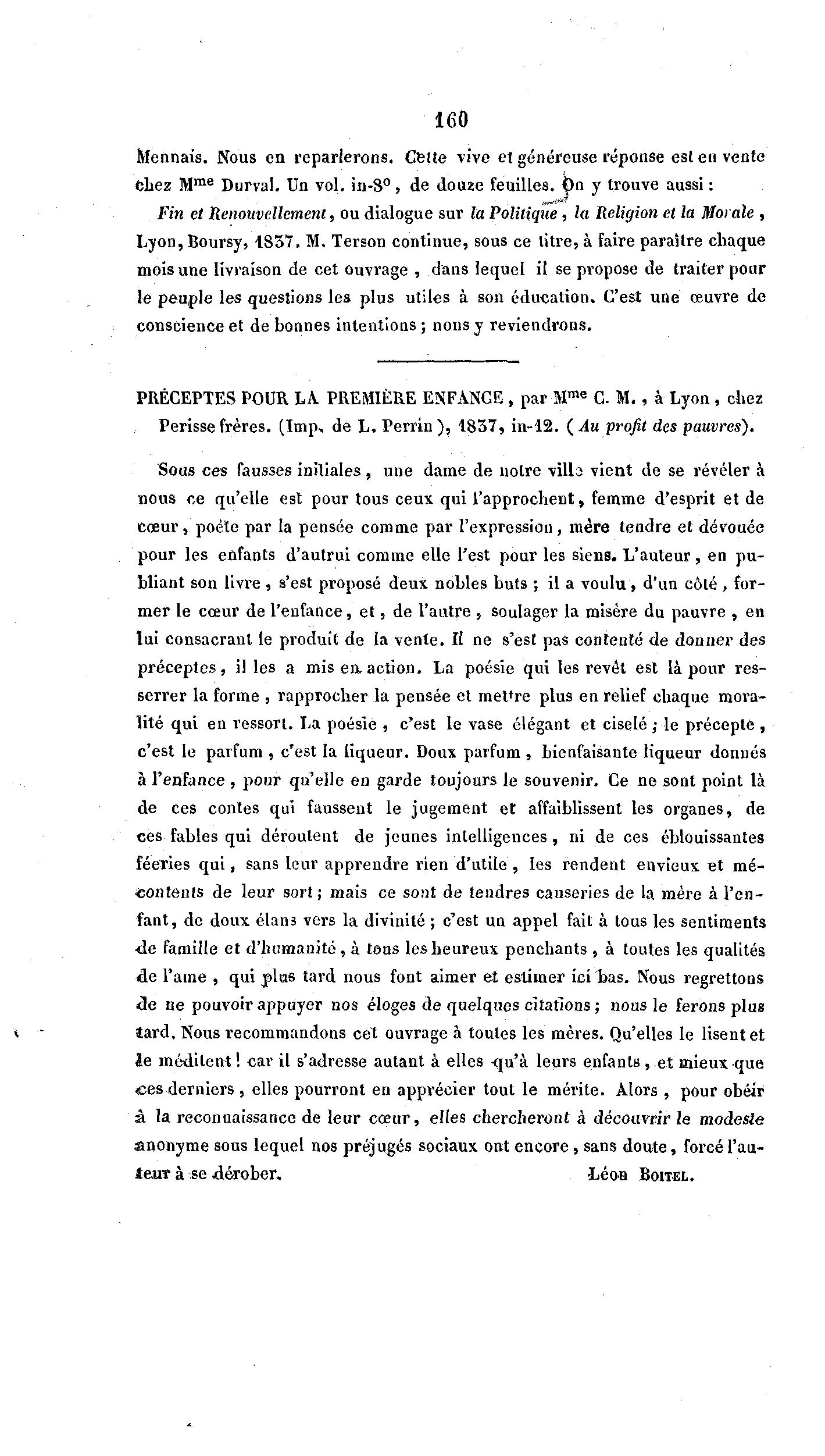 Lyon,Boursy, 1857. M. Terson continue, sous ce litre, à faire paraître chaque