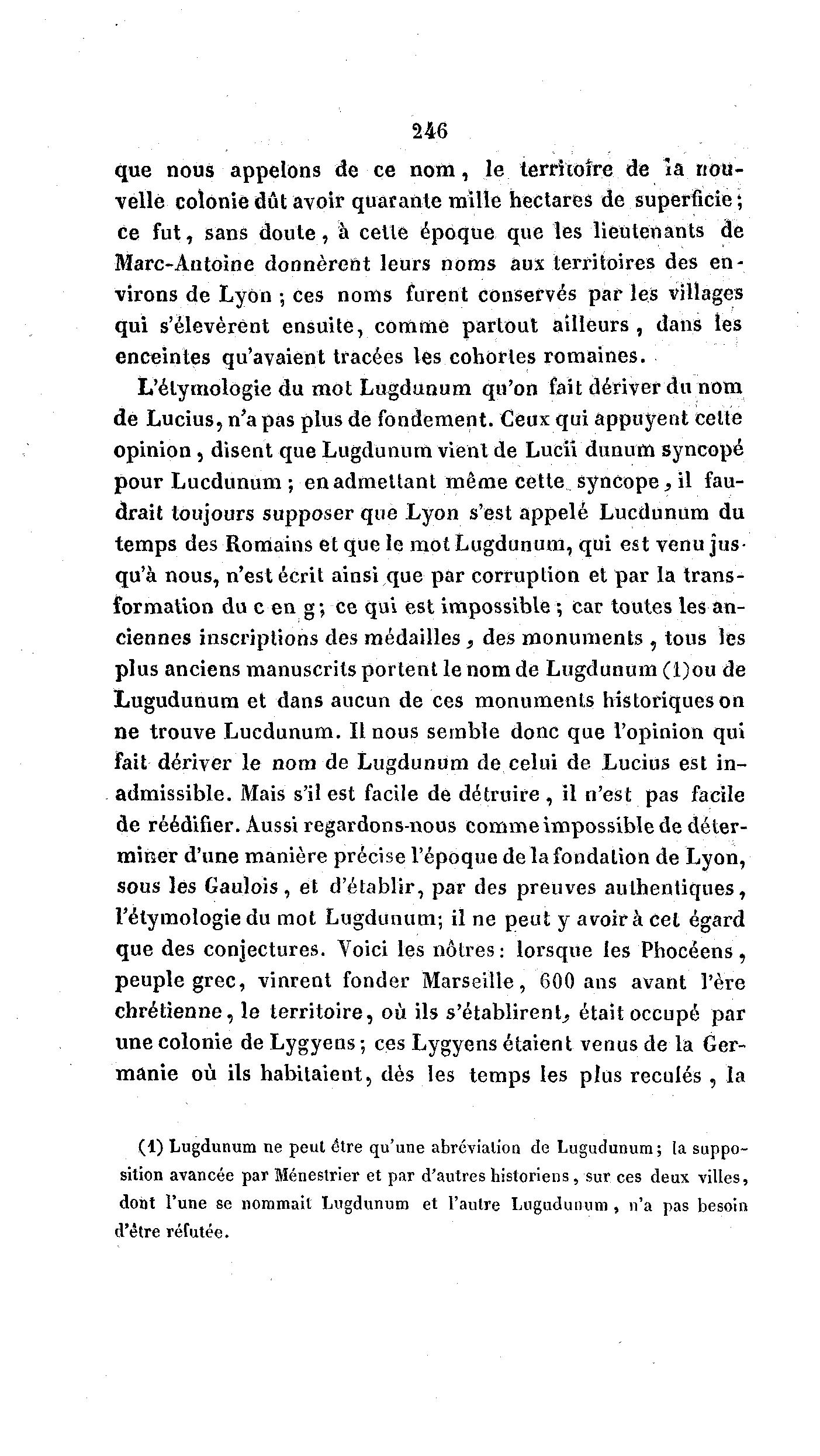 temps des Romains et que le mot Lugdunum, qui est venu jus-