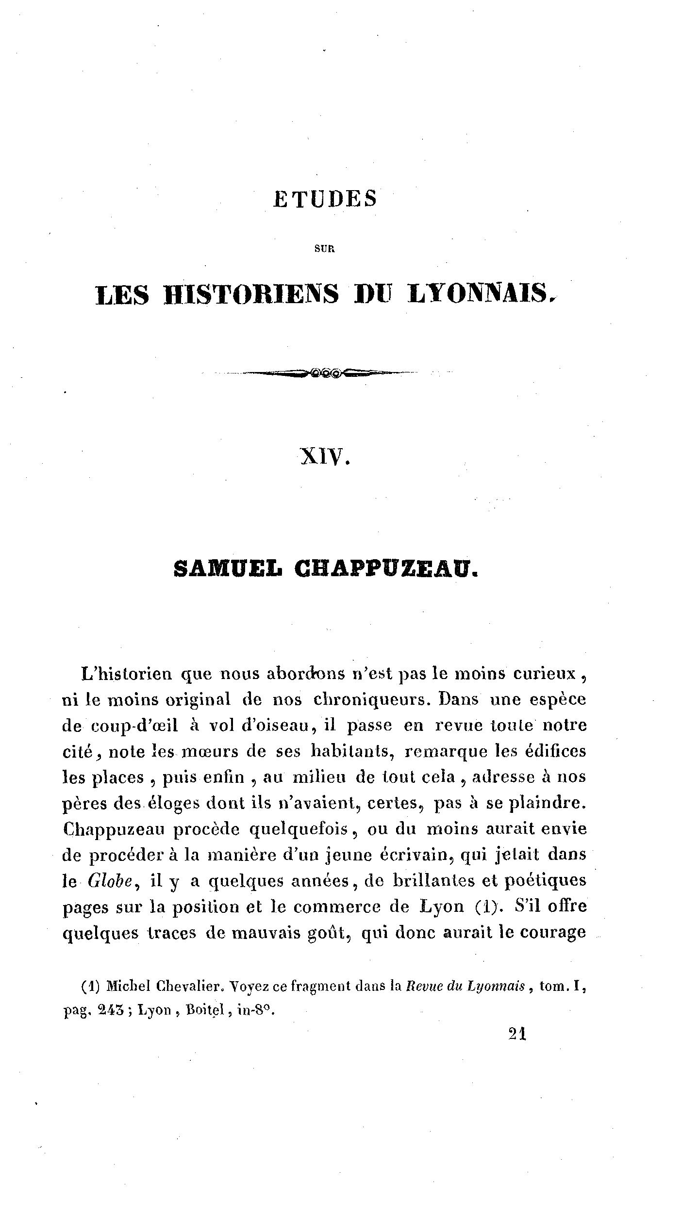 (1) Michel Chevalier. Voyez ce fragment dans la Revue du Lyonnais, tom. I,