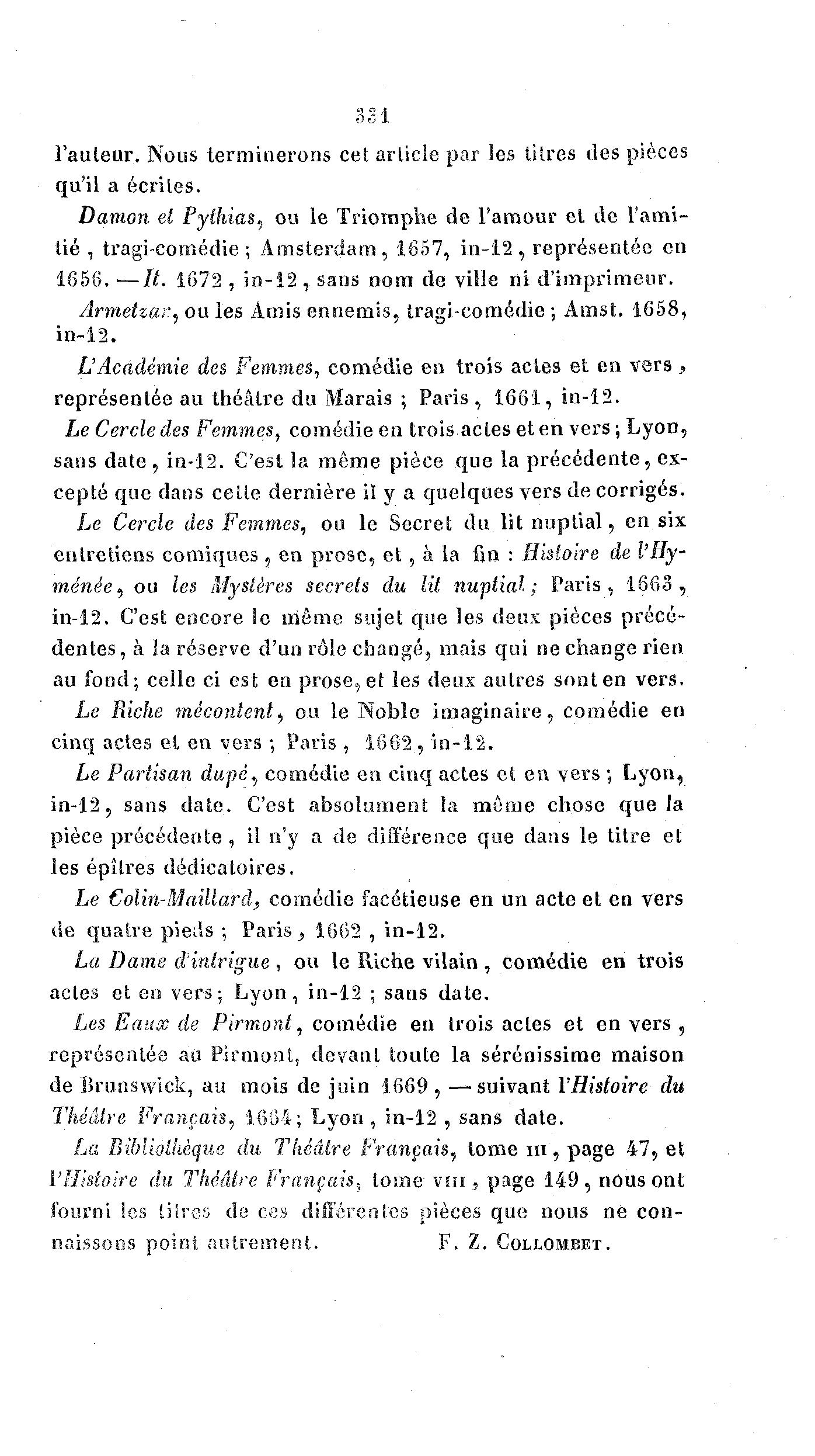 La Bibliothèque du Théâtre Français, tome m , page 47, et