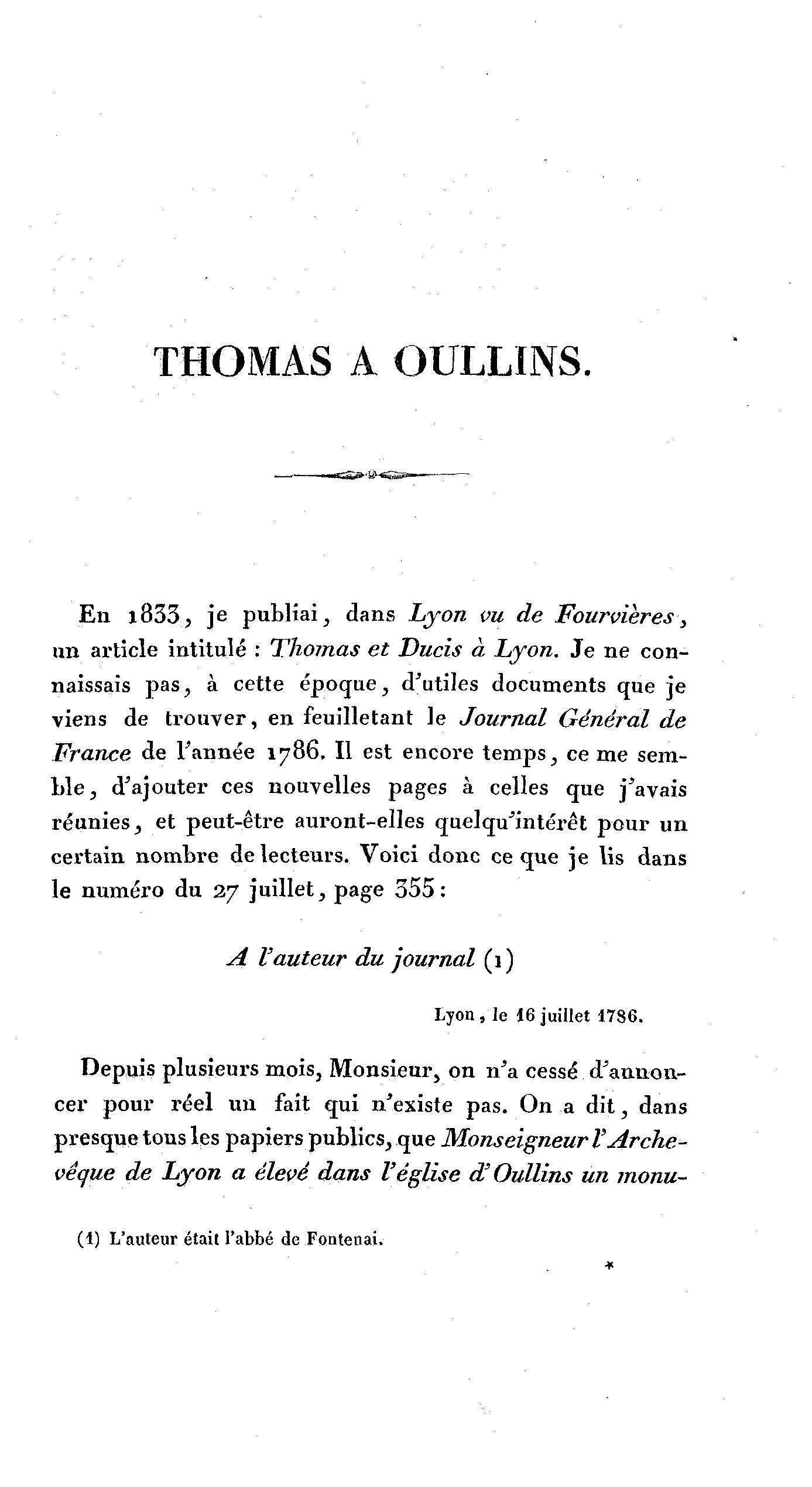 un article intitulé : Thomas et Ducis à Lyon. Je ne con-
