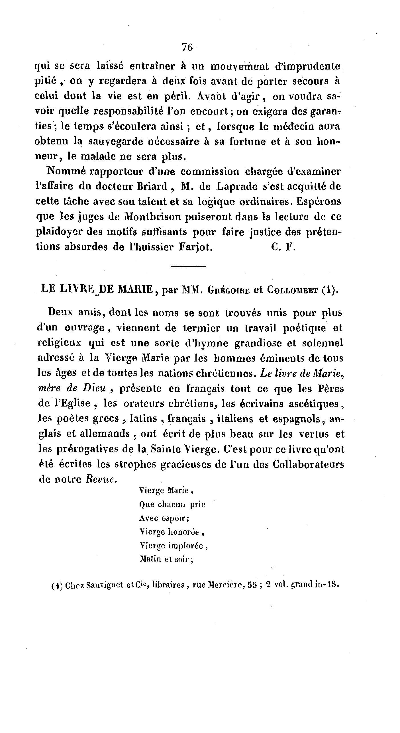 LE LIVRE DE MARIE, par MM. GRÉGOIRE et COLLOMBET (1).
