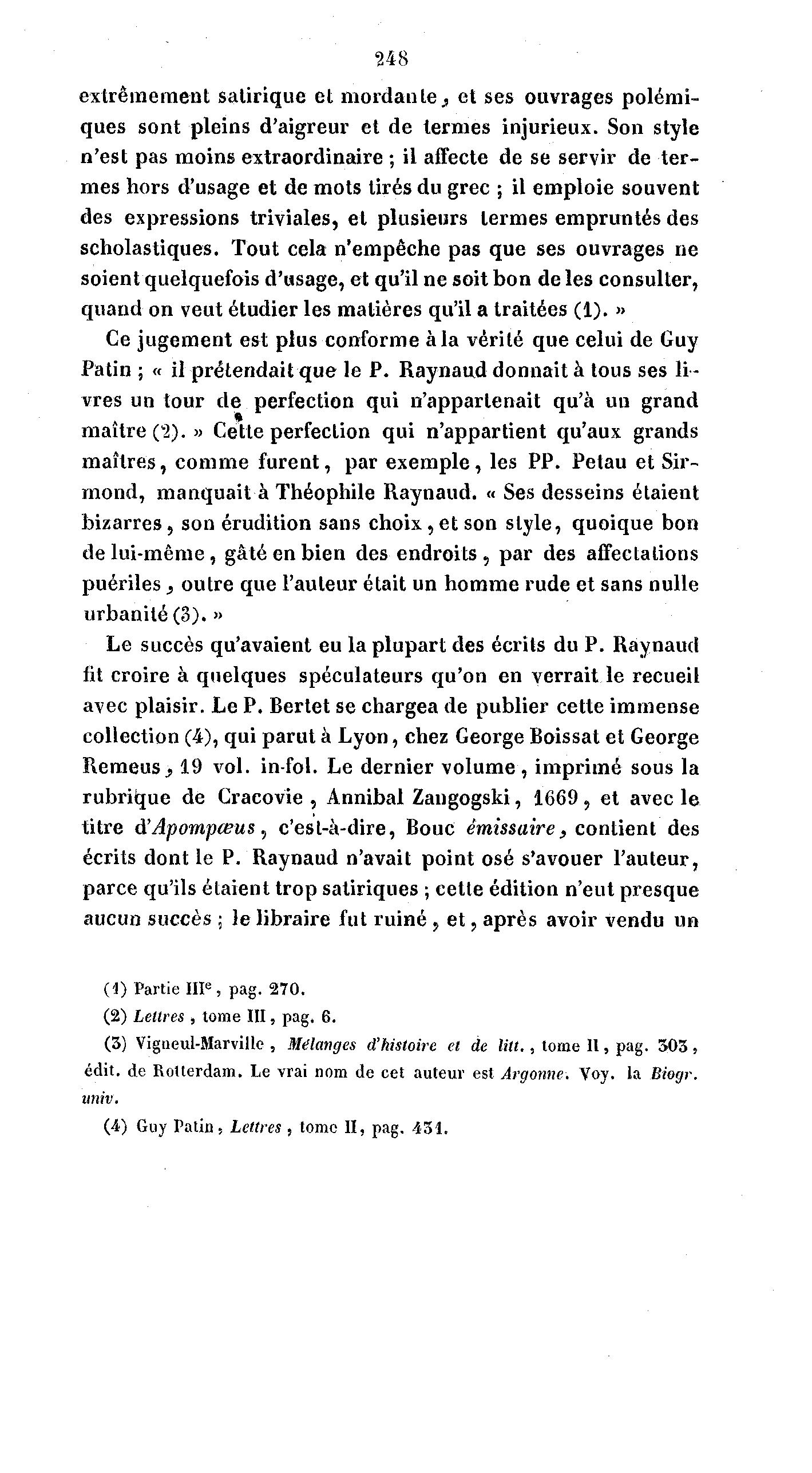 Patin ; « il prétendait que le P. Raynaud-donnait à tous ses li-
