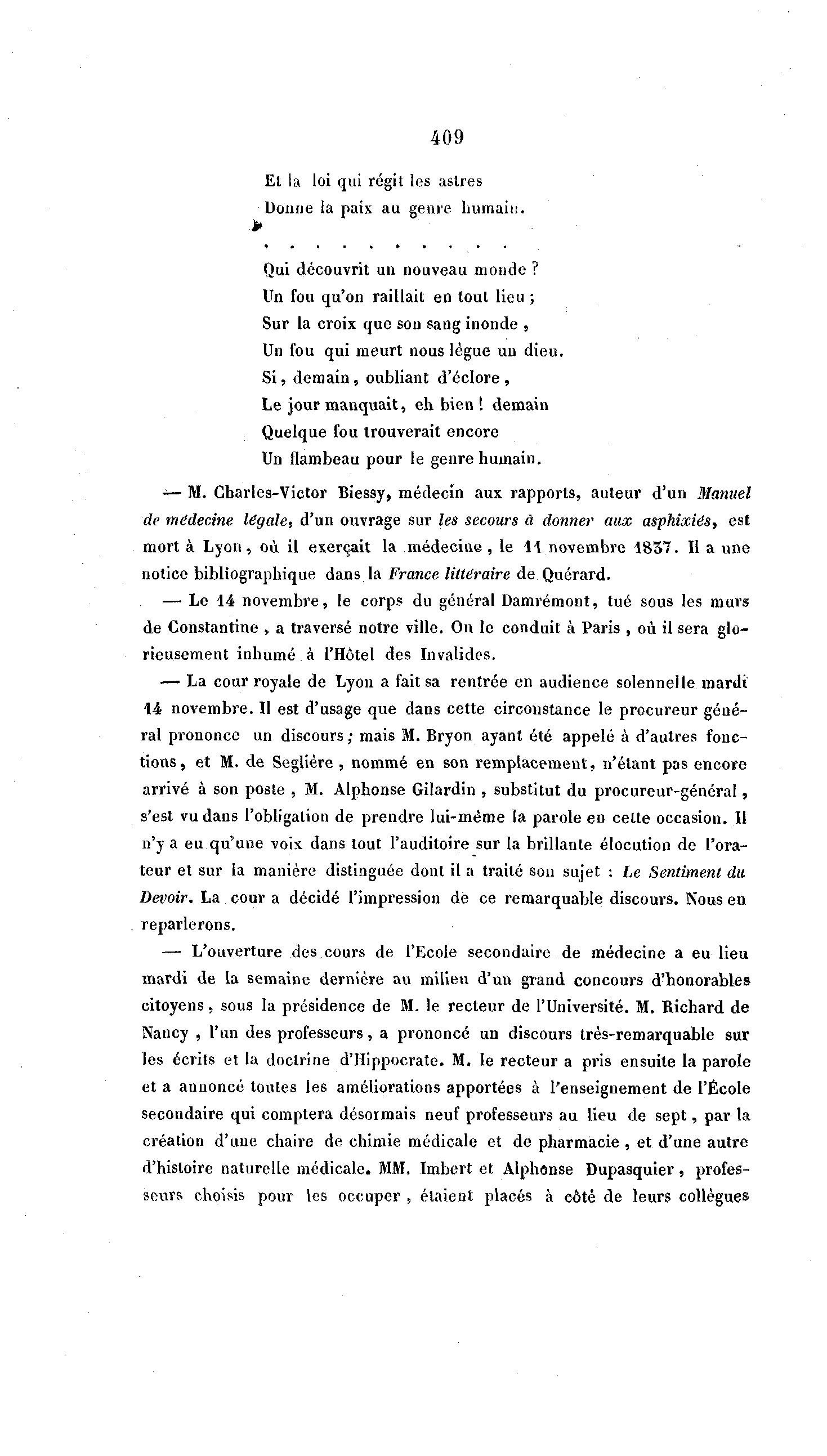 mort à Lyon, où il exerçait la médecine , le 11 novembre 183Î. Il a une