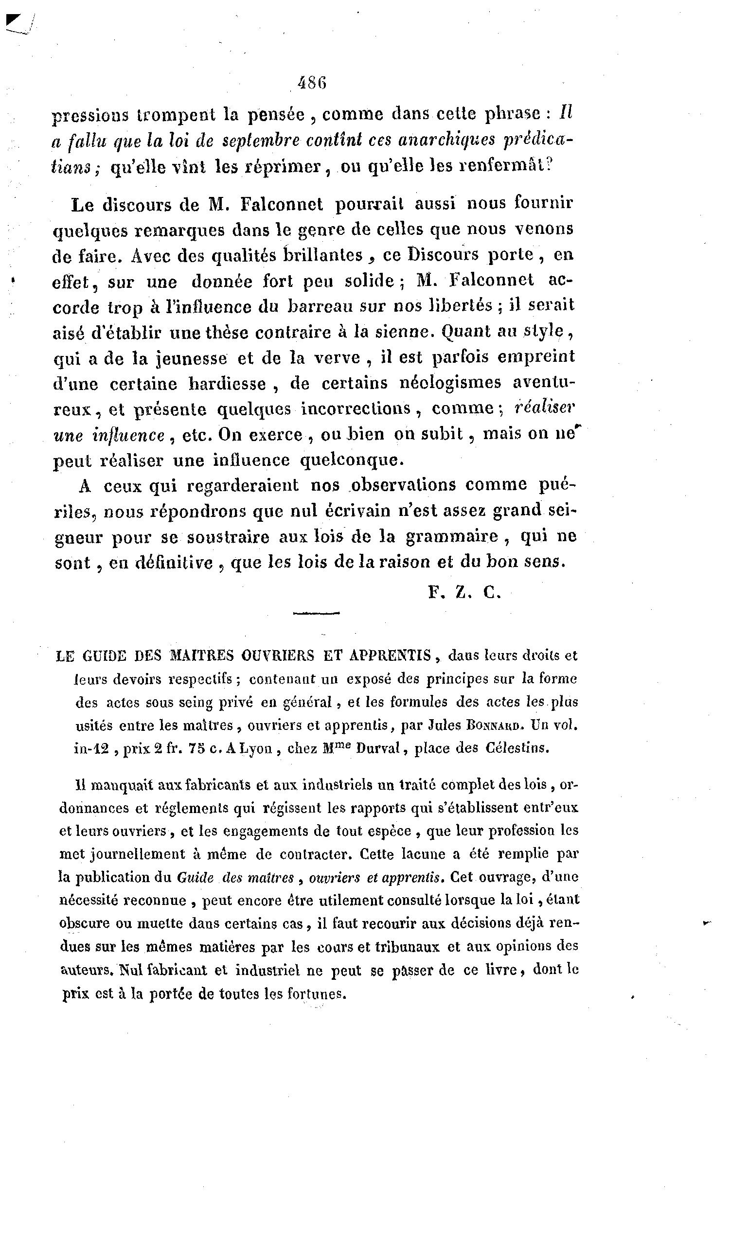 la publication du Guide des maîtres , ouvriers et apprentis. Cet ouvrage, d'une