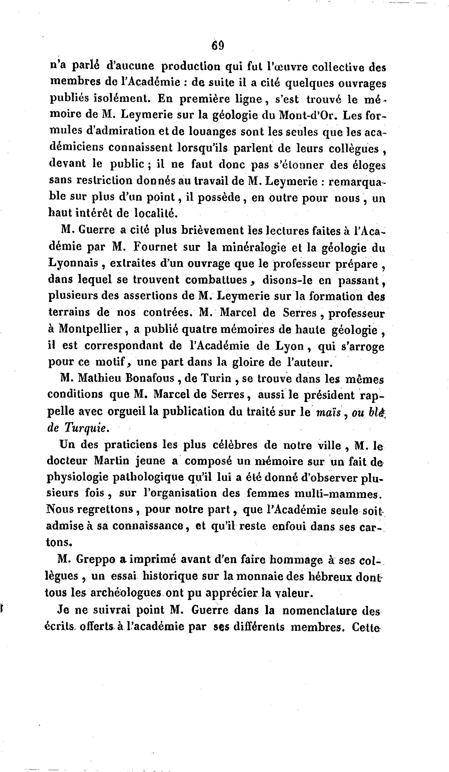 sans restriction donnés au travail de M. Leymerie : remarqua-
