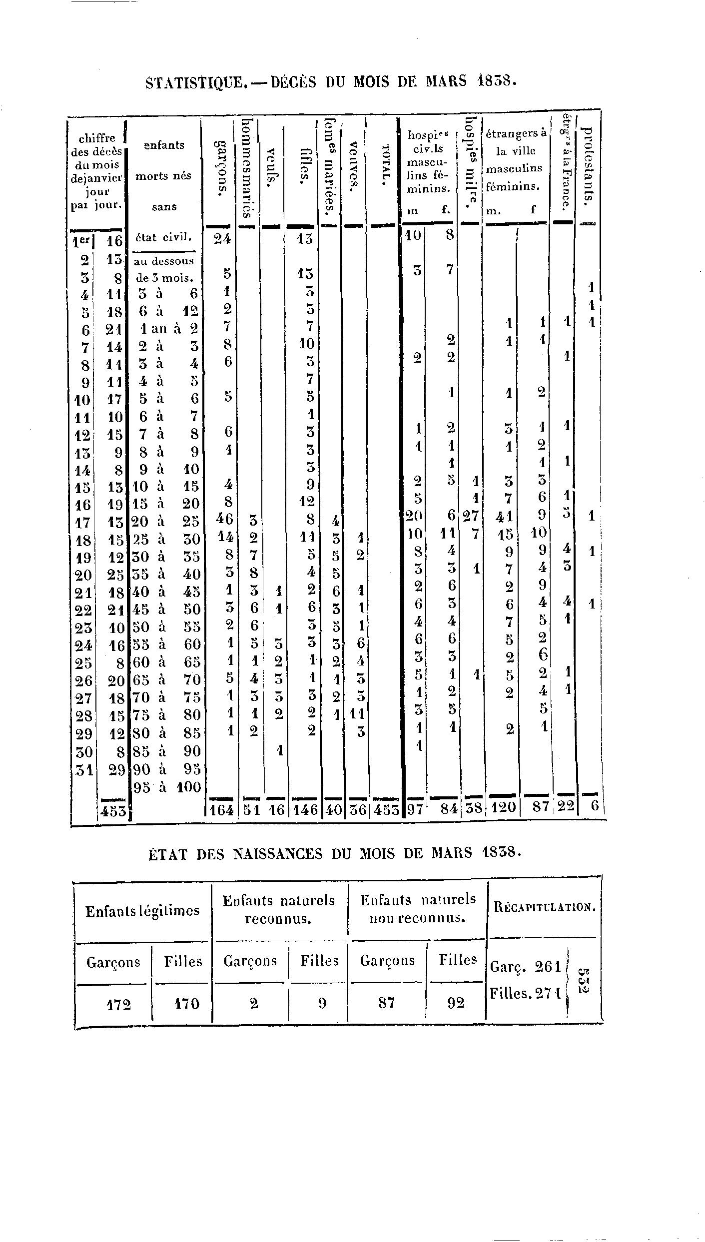 STATISTIQUE. —DÉCÈS DU MOIS DE MARS 1 8 5 8 .