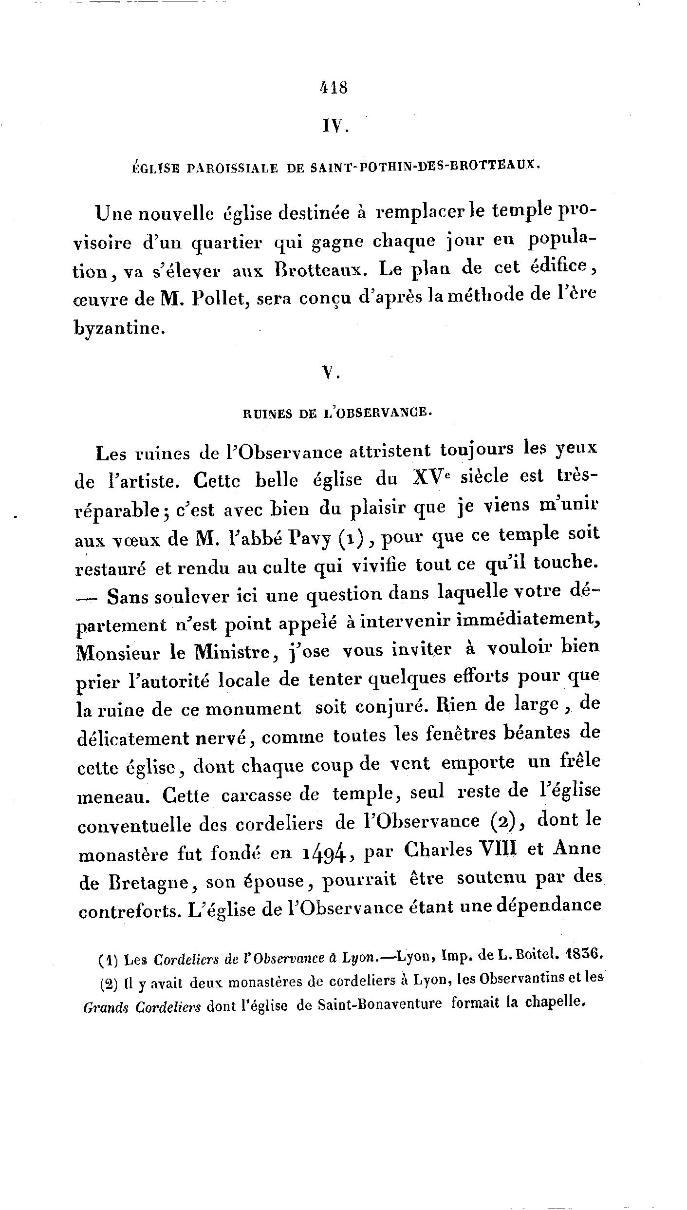 (2) Il y avait deux monastères de cordeliers à Lyon, les Observantins et les