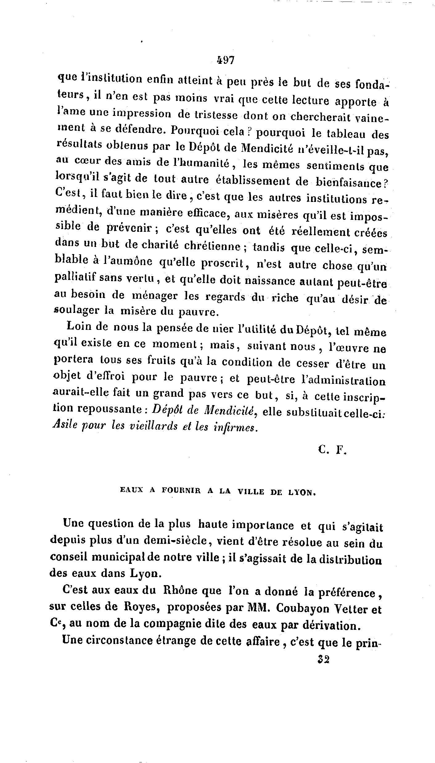EAUX A FOURNIR A LA VILLE DE LYON.