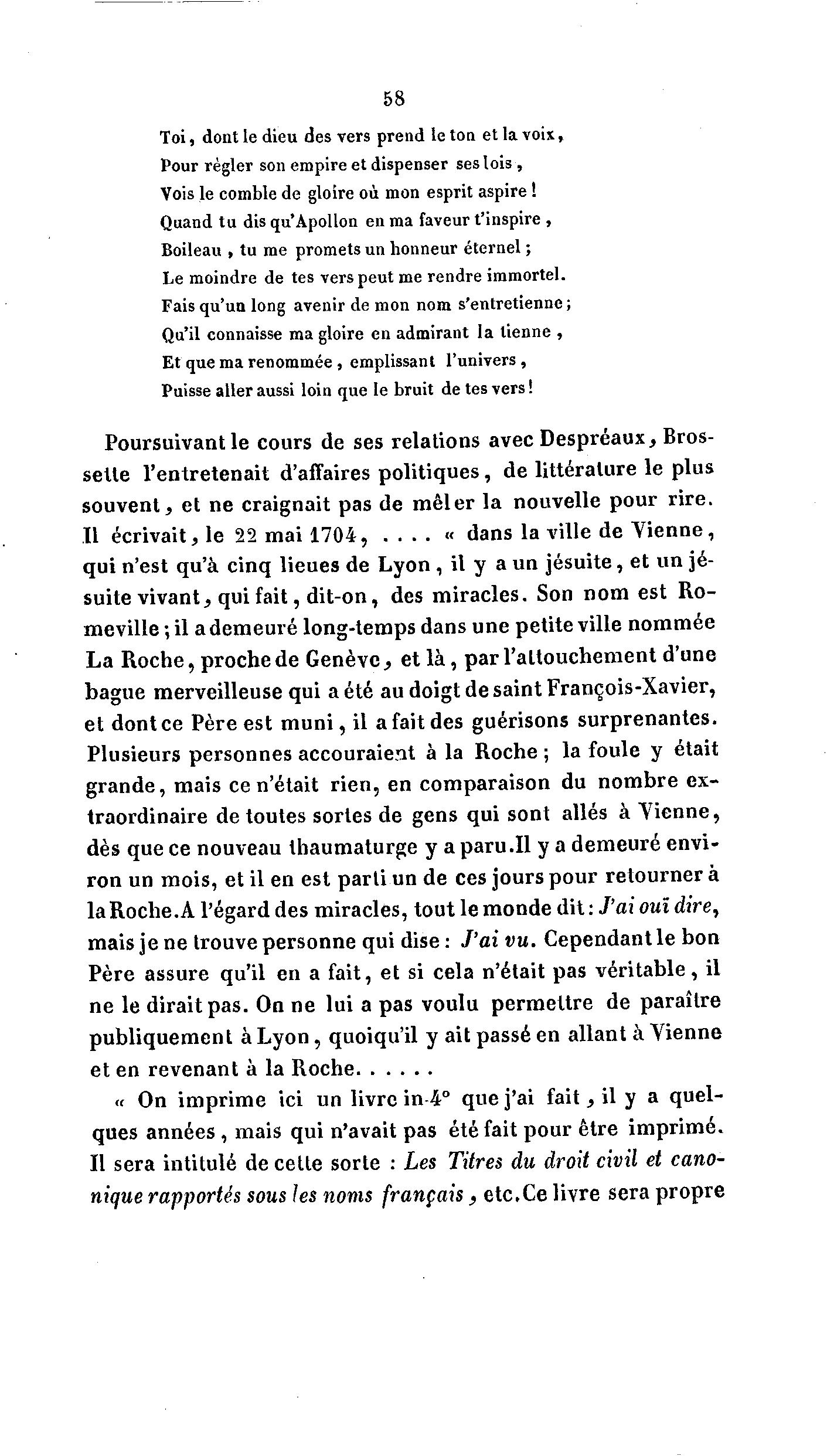 Poursuivant le cours de ses relations avec Despréaux, Bros-