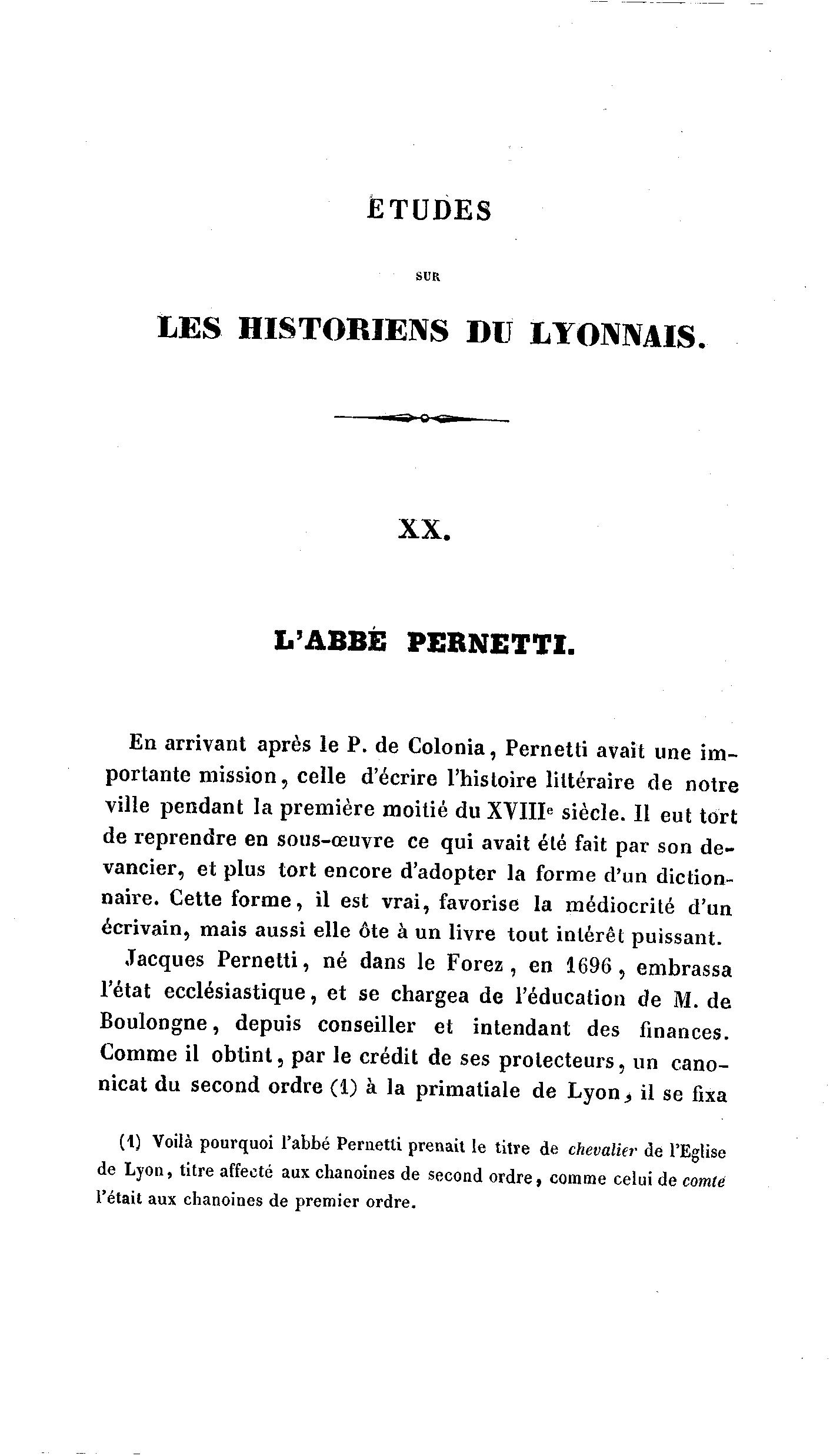 (1) Voilà pourquoi l'abbé Pernetti prenait le titre de chevalier de l'Eglise