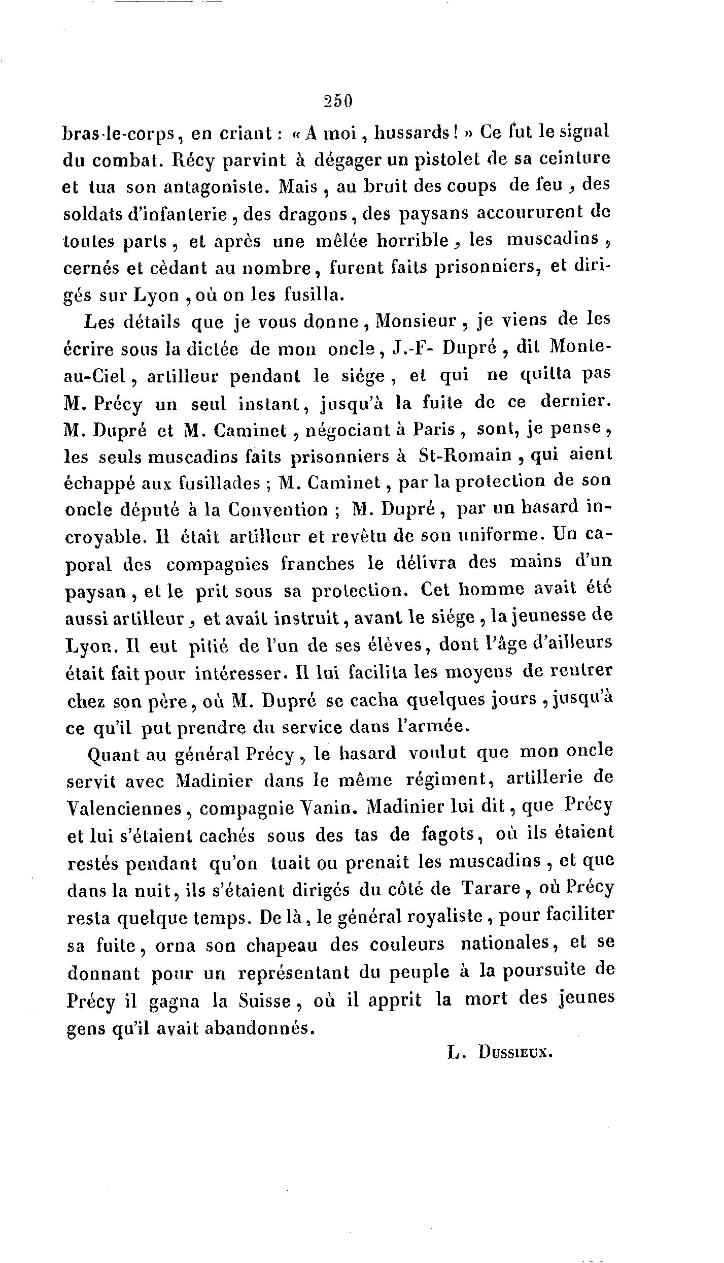 Précy il gagna la Suisse, où il apprit la mort des jeunes