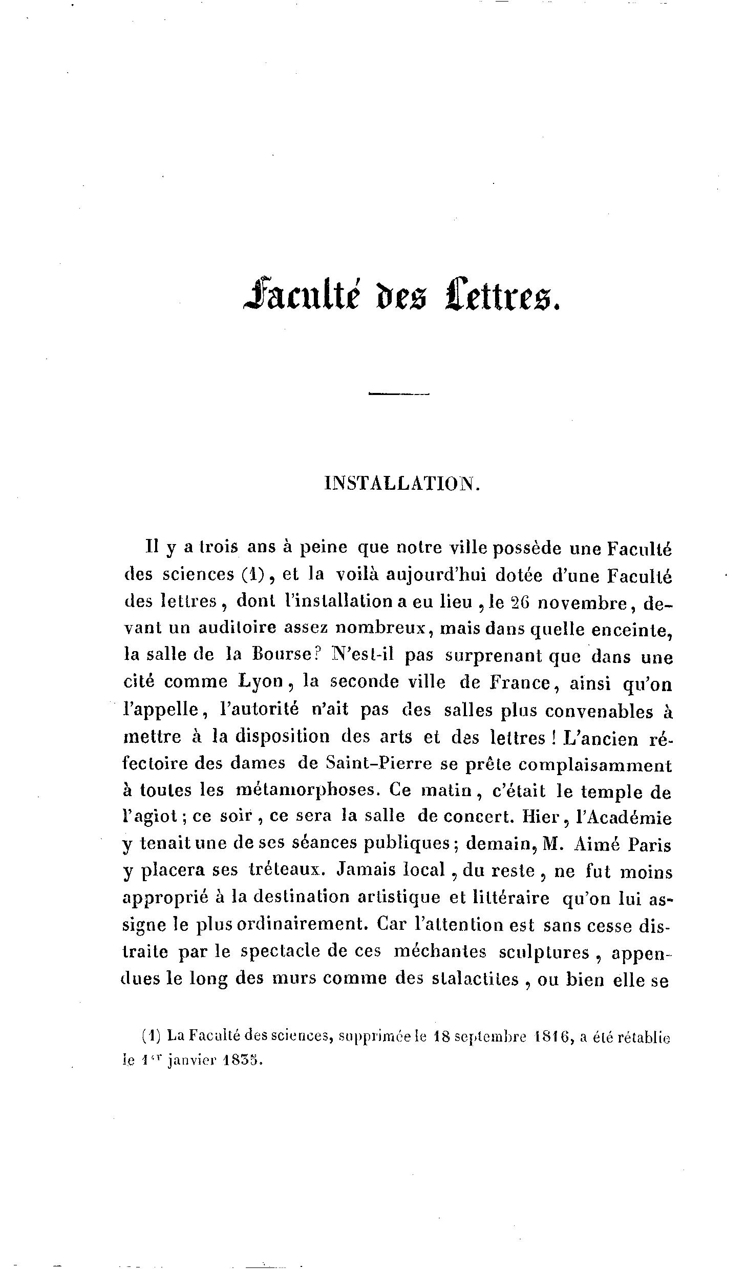 (1) La Faculté des sciences, supprimée le 18 septembre 1816, a été rétablie