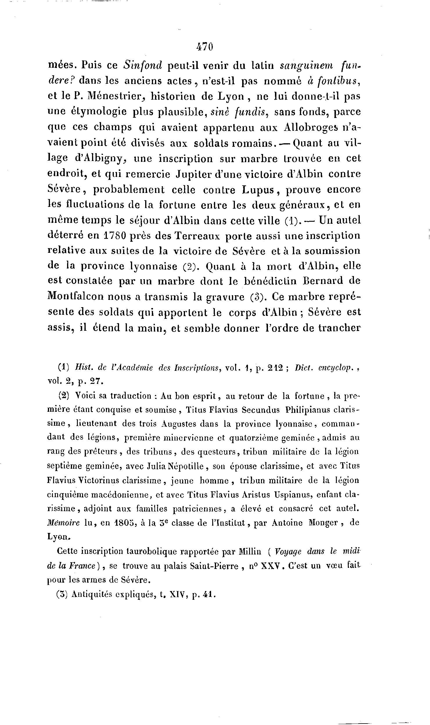 de la province lyonnaise (2). Quant à la mort d'Albin, elle