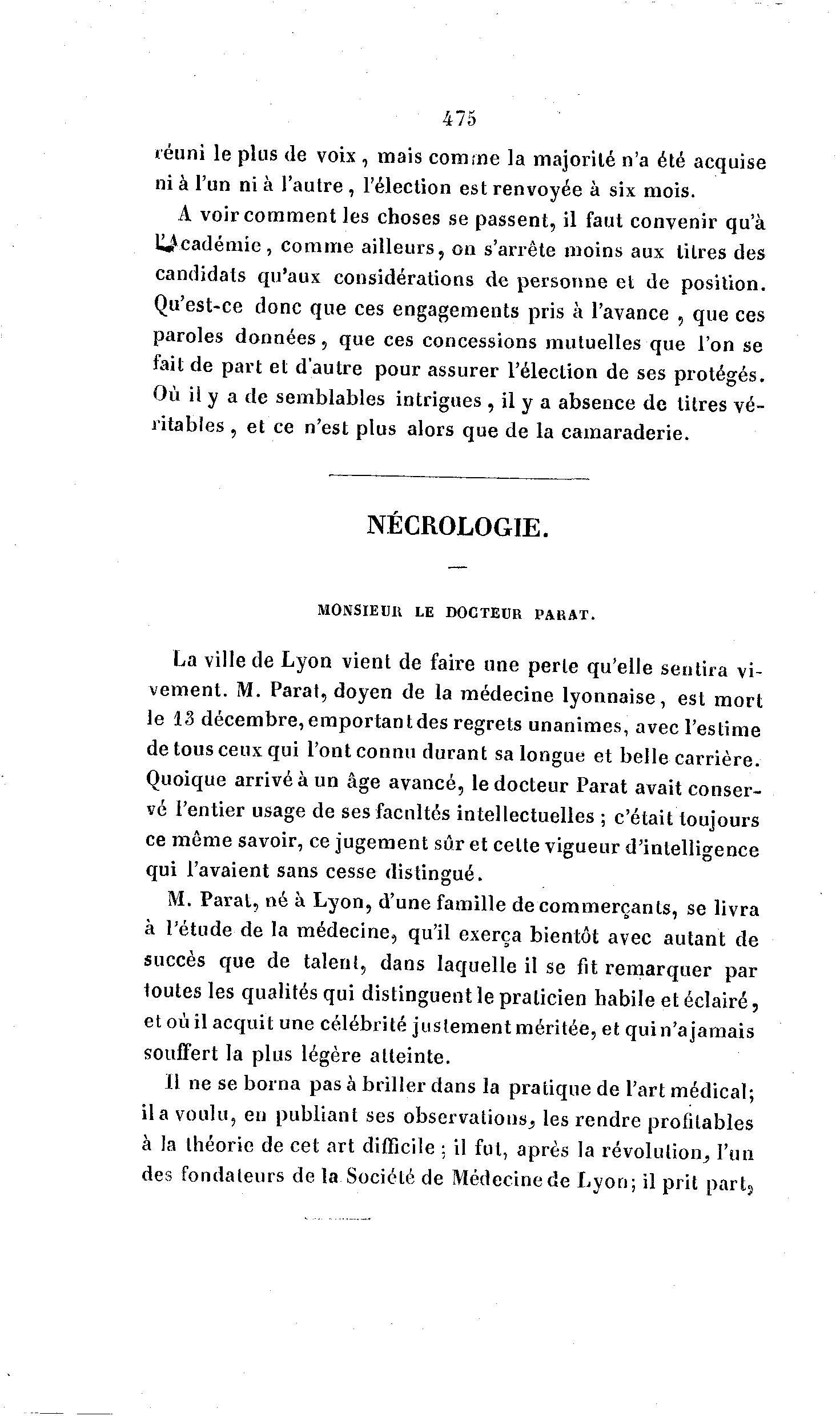 vement. M. Parât, doyen de la médecine lyonnaise, est mort