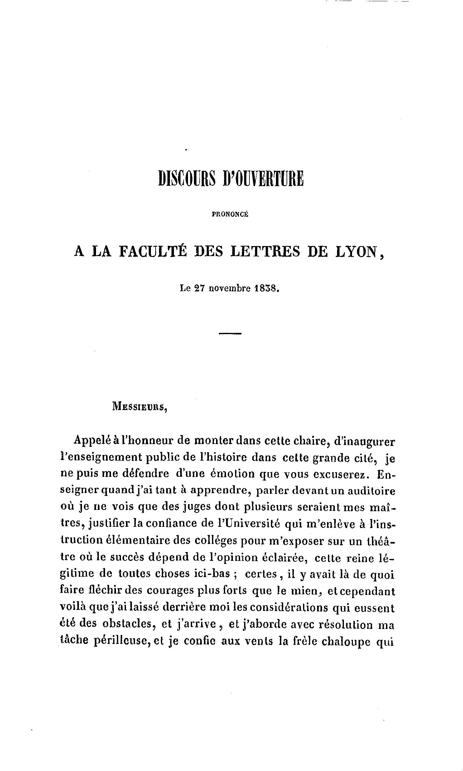Appelé à l'honneur de monter dans cette chaire, d'inaugurer