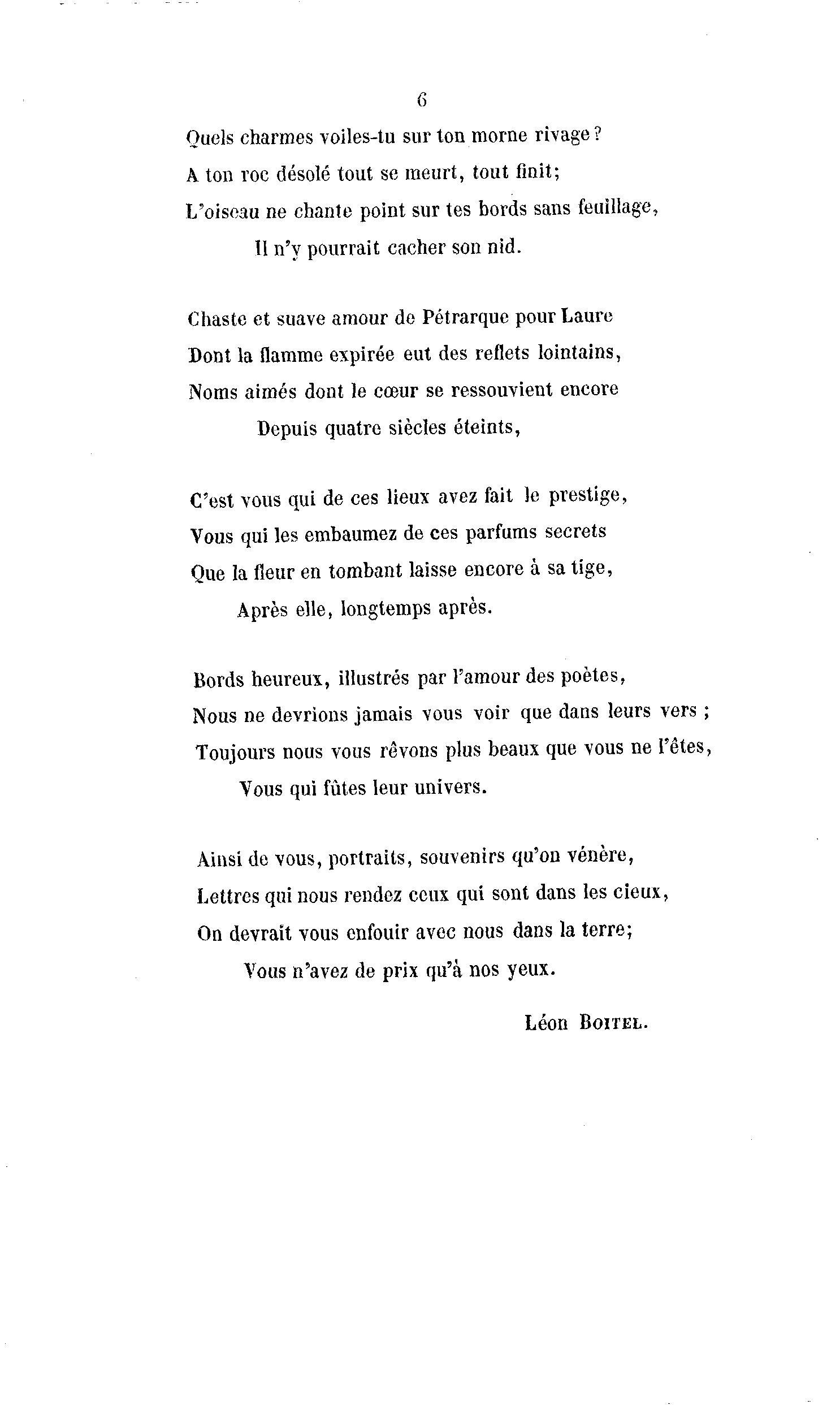 L'oiseau ne chante point sur tes bords sans feuillage,