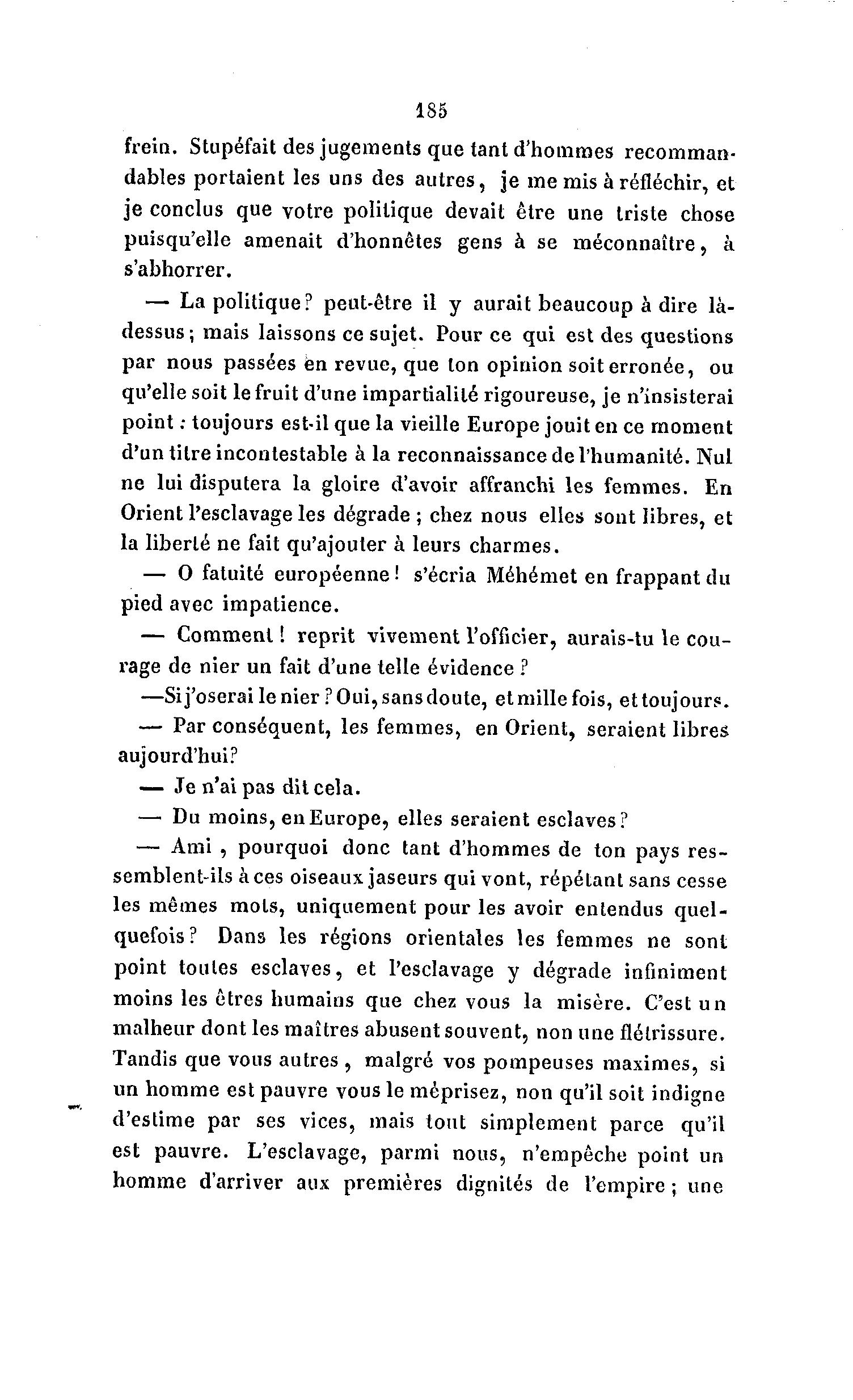 Orient l'esclavage les dégrade ; chez nous elles sont libres, et