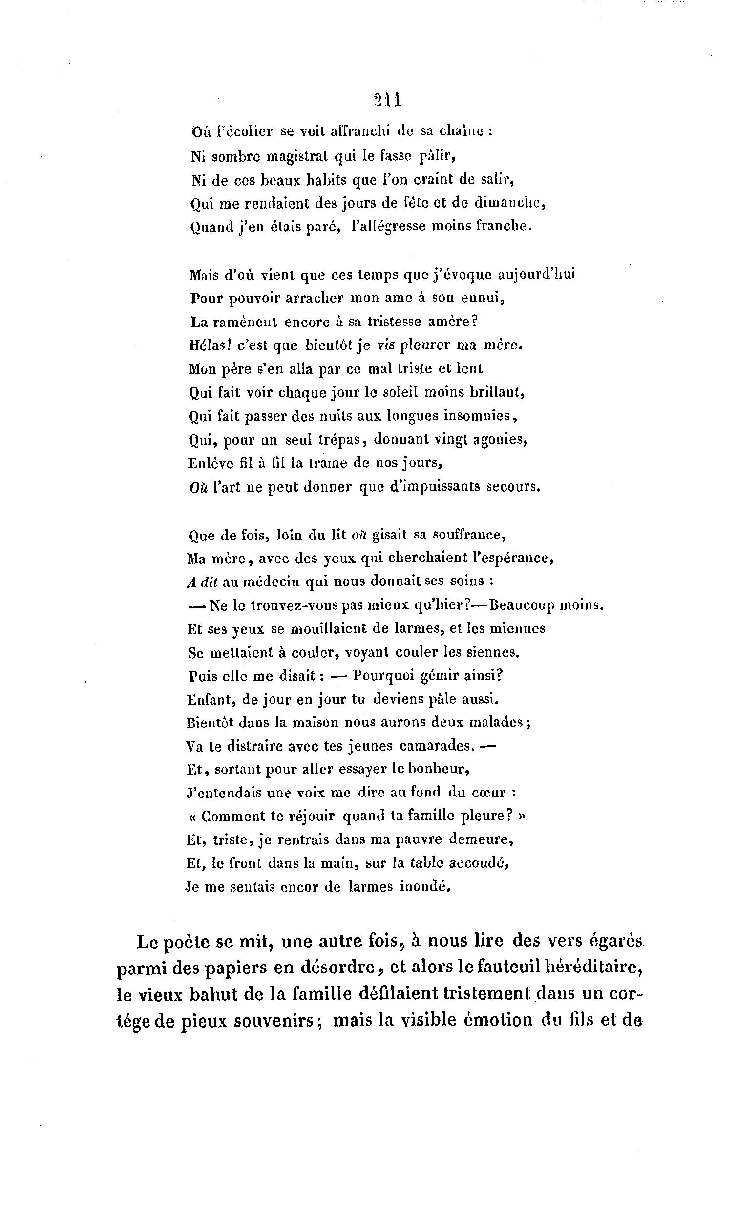 Hélas! c'est que bientôt je vis pleurer ma mère.