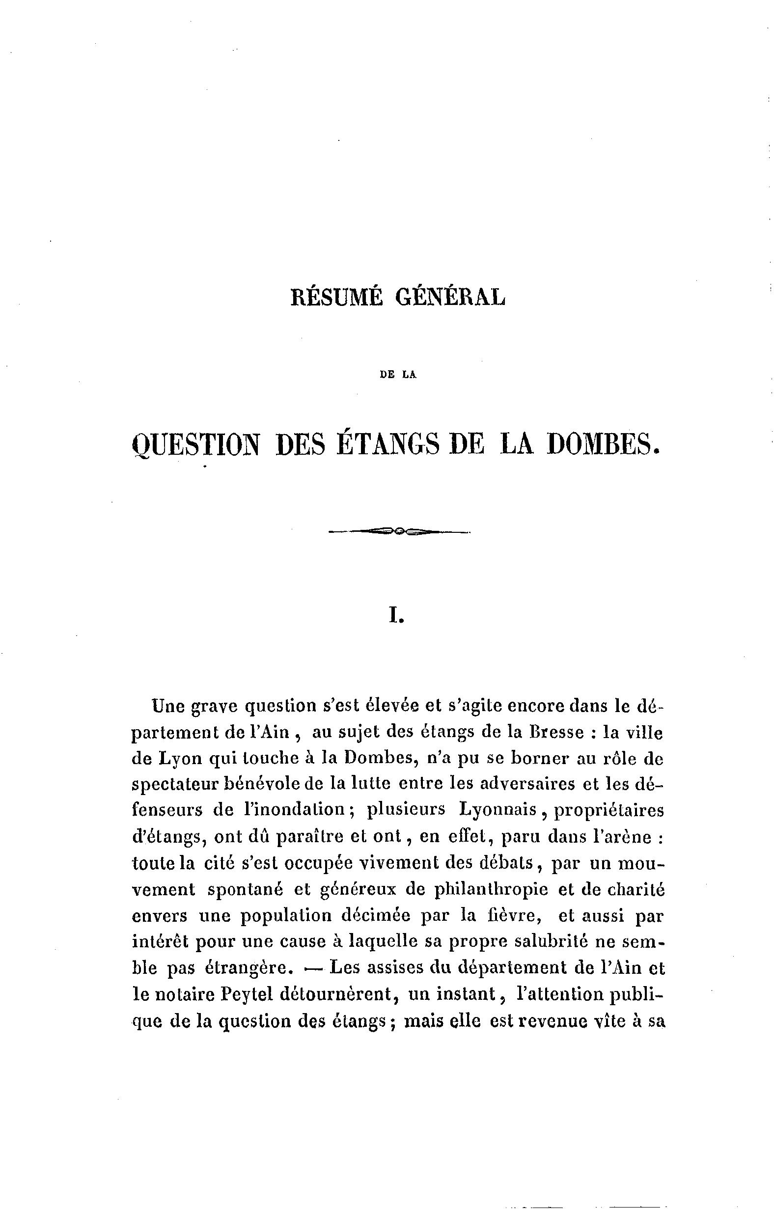 QUESTION DES ÉTANGS DE LA DOMBES.