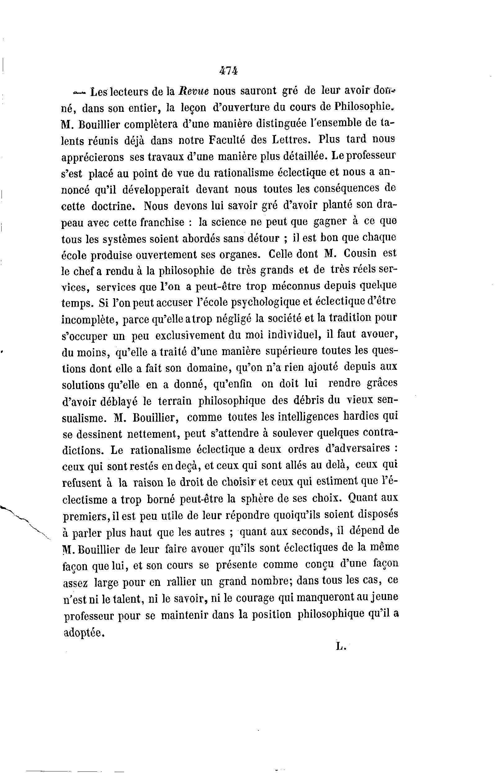 né, dans son entier, la leçon d'ouverture du cours de Philosophie.