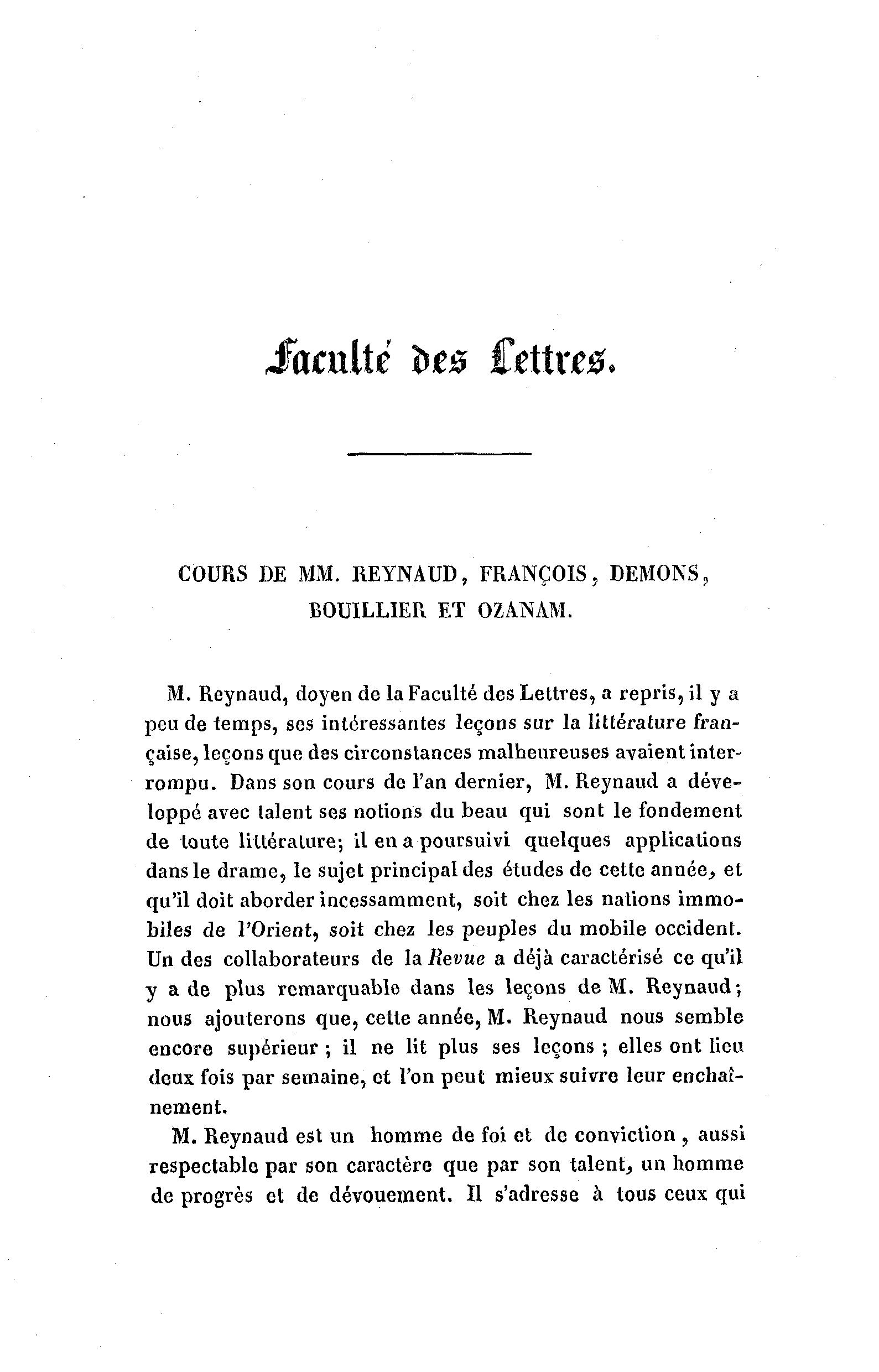 M. Reynaud, doyen de la Faculté des Lettres, a repris, il y a