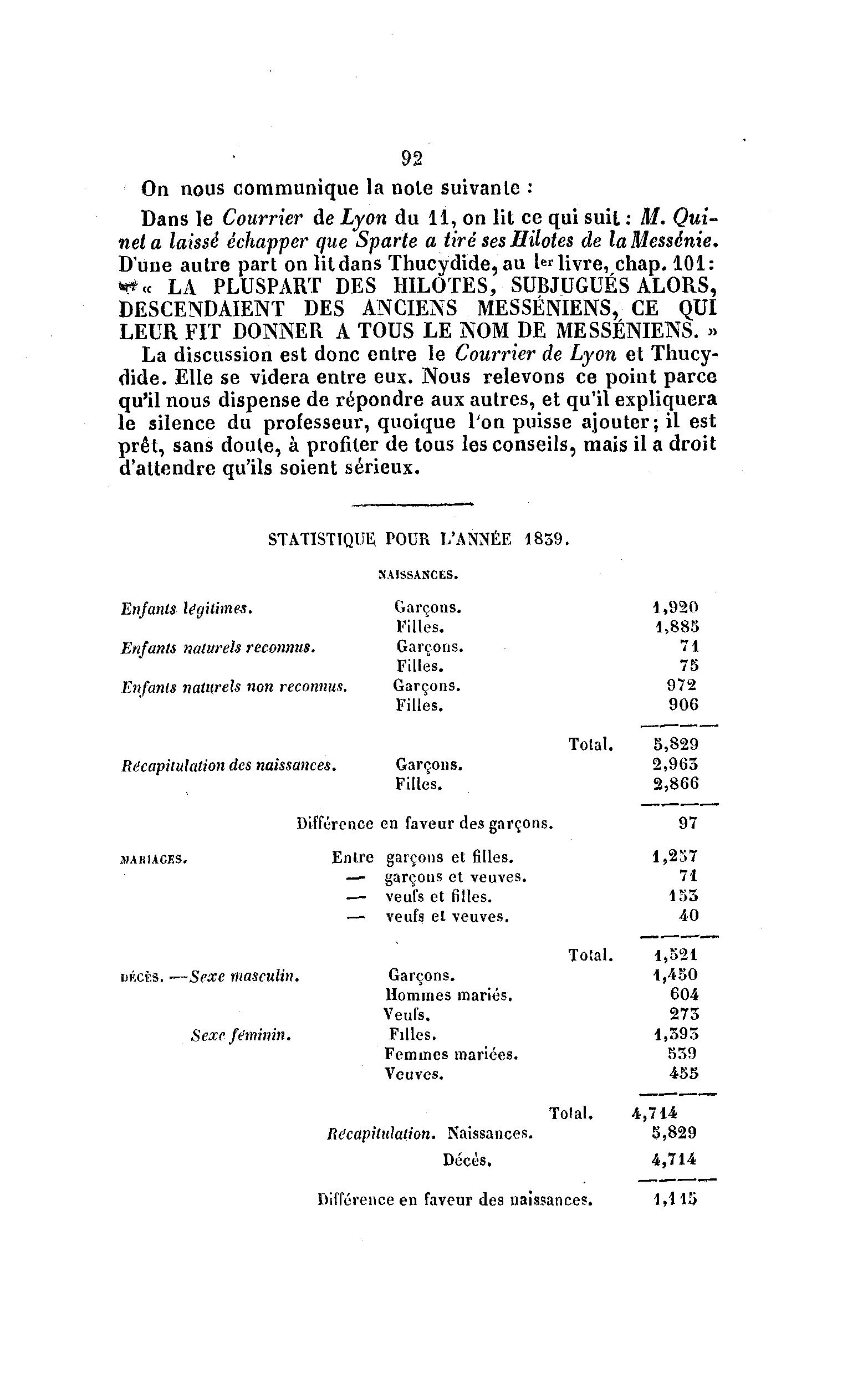 La discussion est donc entre le Courrier de Lyon et Thucy-